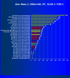 Однако если включить в сравнение игры с RT и масштабированием изображения, то расширяющаяся поддержка DLSS 3 в играх поднимает семейство GeForce RTX 40 на недосягаемый уровень, и даже больший объем памяти (16 ГБ против 12 ГБ у GeForce RTX 4070 Ti/Super) не помогает.