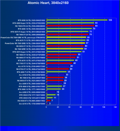 | 16 | RX 7800 XT 16 ГБ, 2430—2770/19400 | 234 | 1379 | 59 000 |