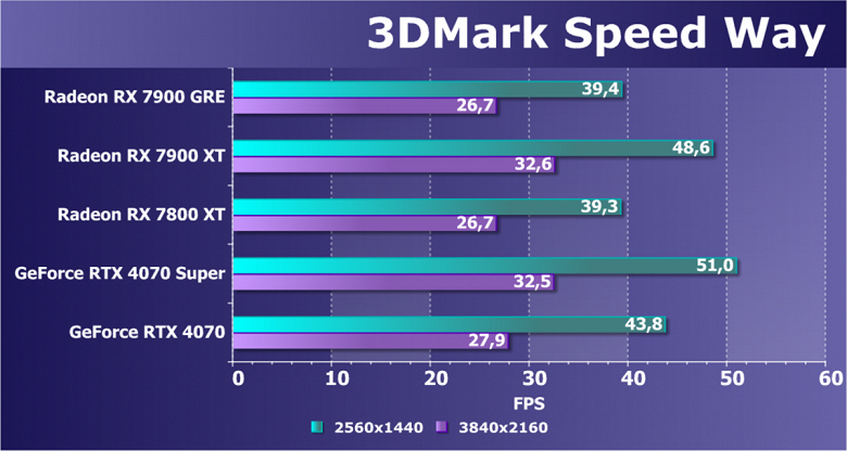 В целом, исходя из сложившихся на момент подготовки обзора цен, Radeon RX 7900 GRE, Radeon RX 7800 XT, GeForce RTX 4070 Super и GeForce RTX 4070 Ti довольно близки по показателю полезности, с небольшим перевесом карт AMD.