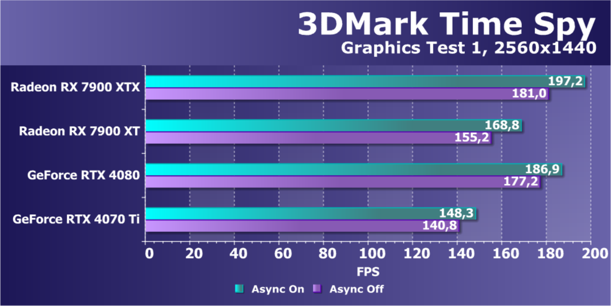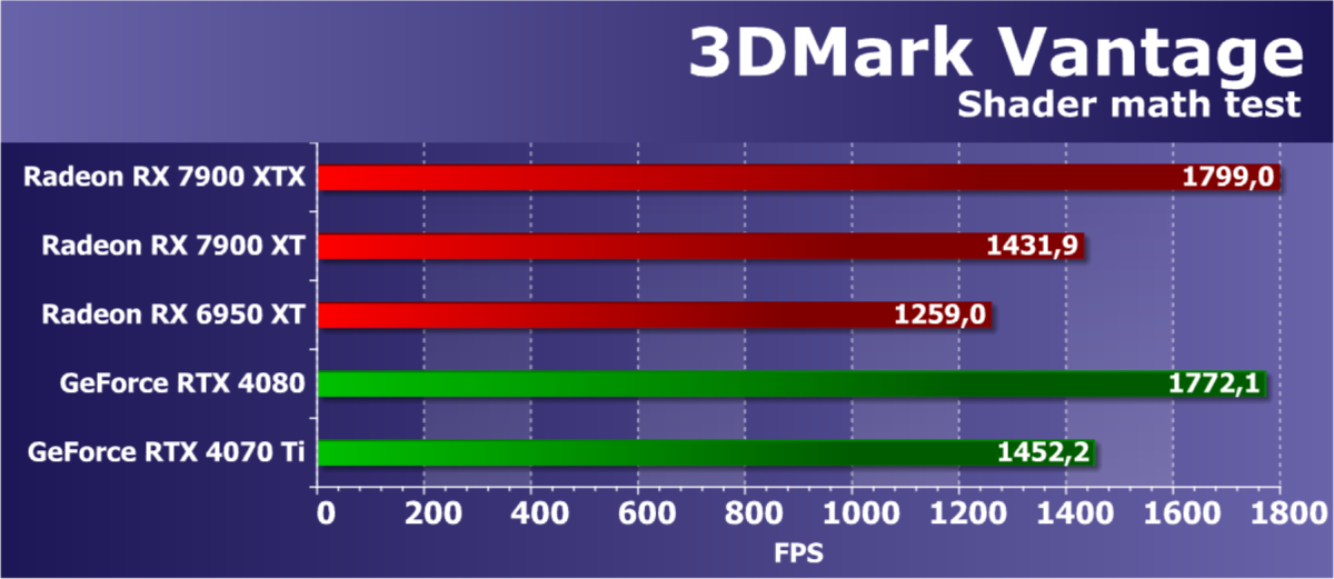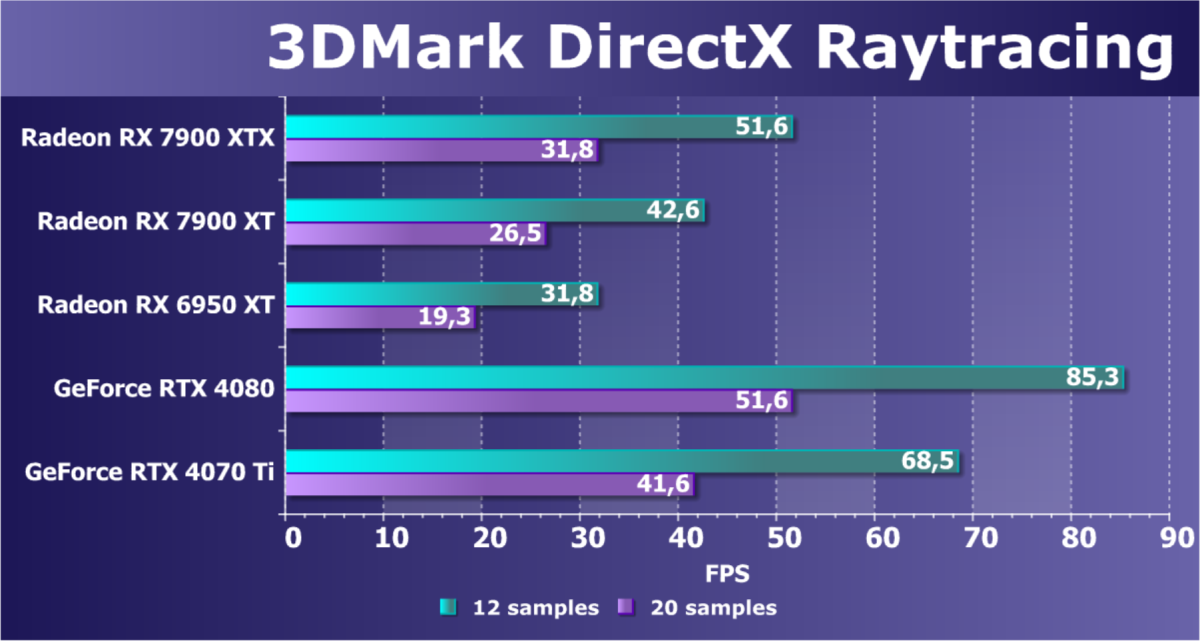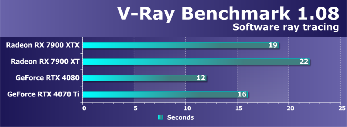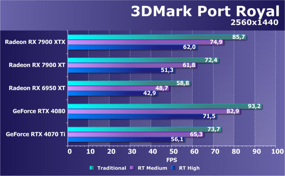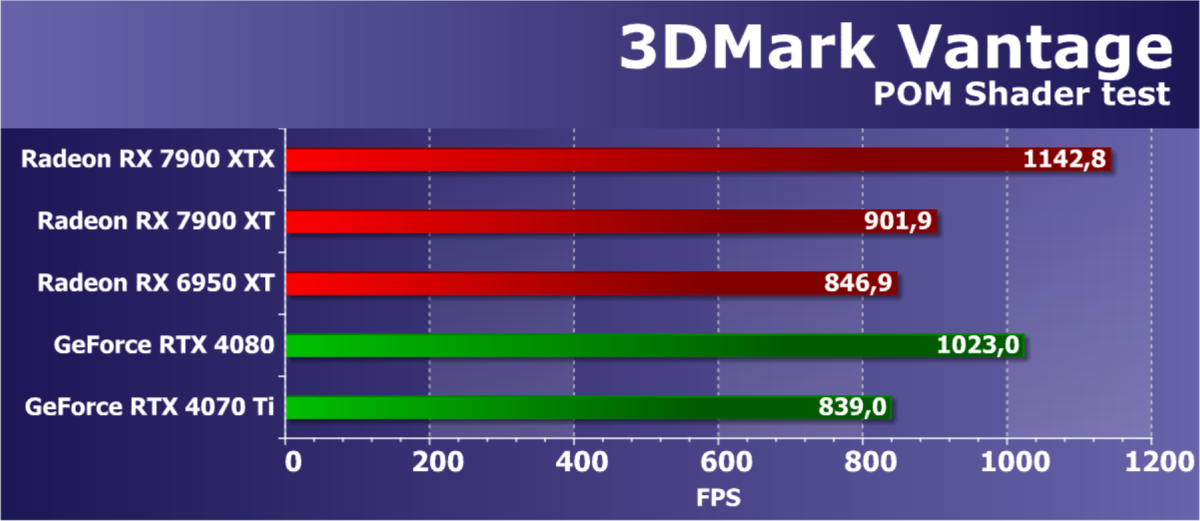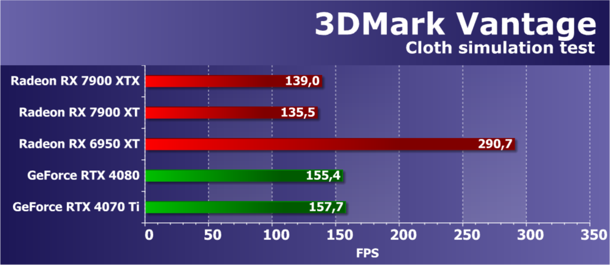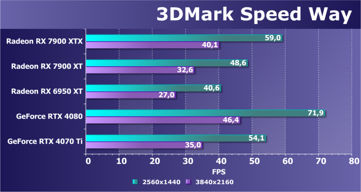 | Radeon RX 7900 XTX | Radeon RX 7900 XT | Radeon RX 6950 XT | GeForce RTX 4090 | GeForce RTX 4080 | GeForce RTX 4070 Ti | |
