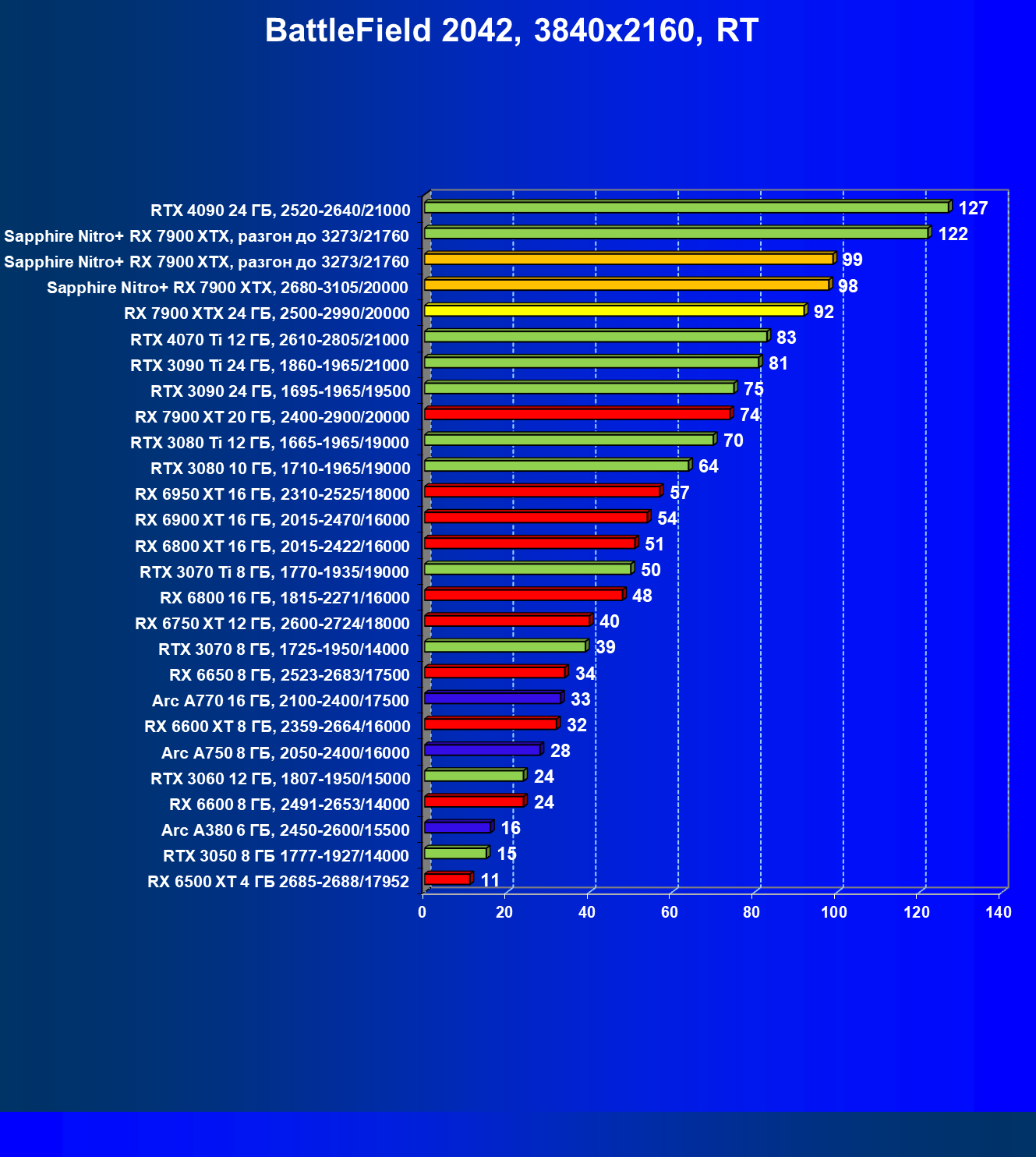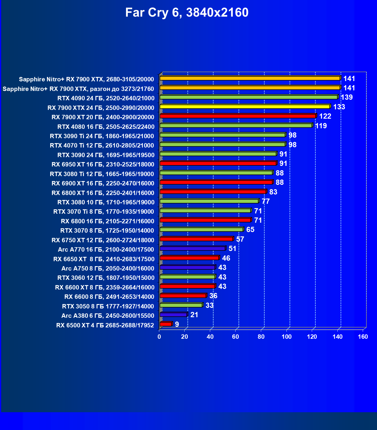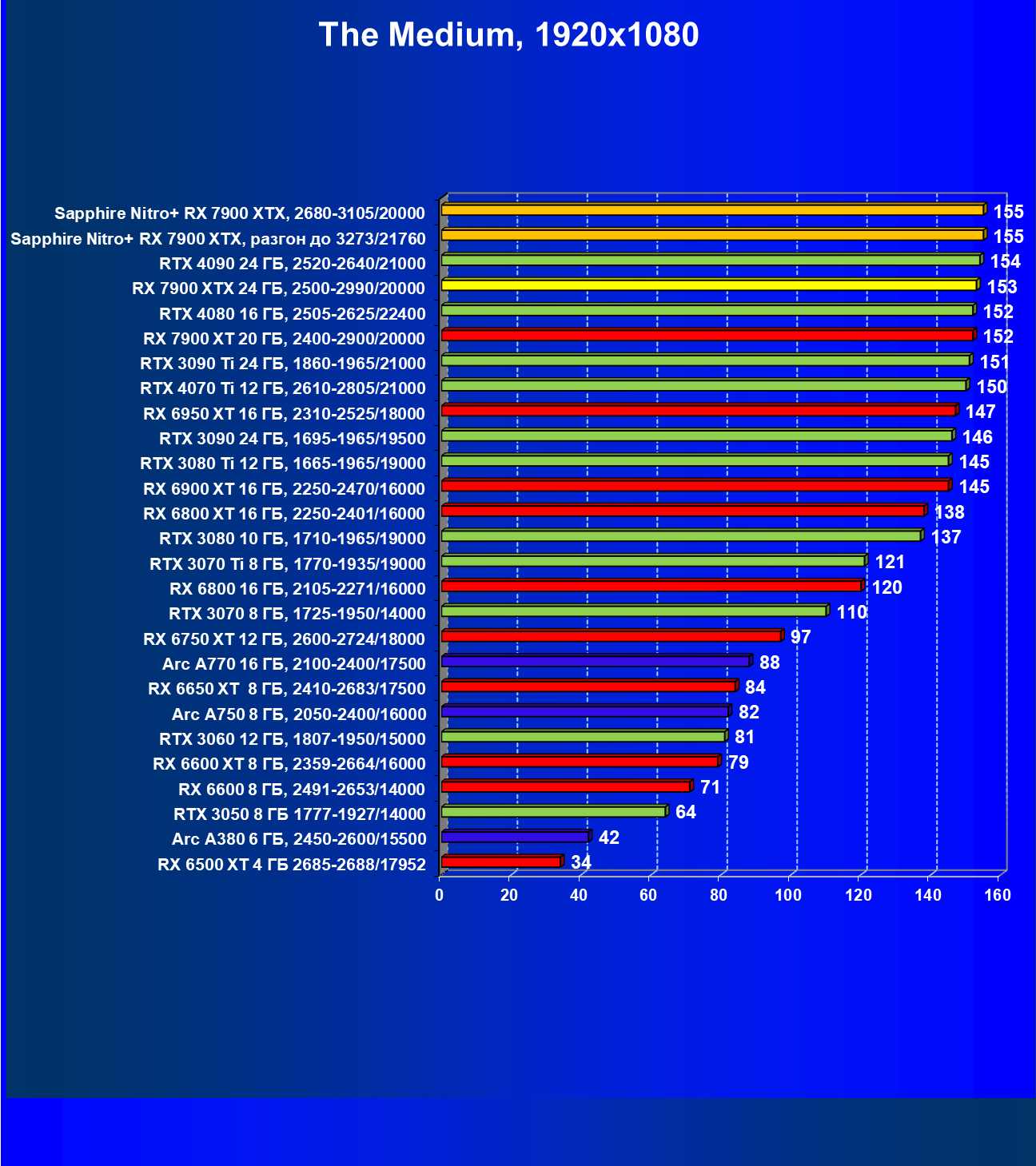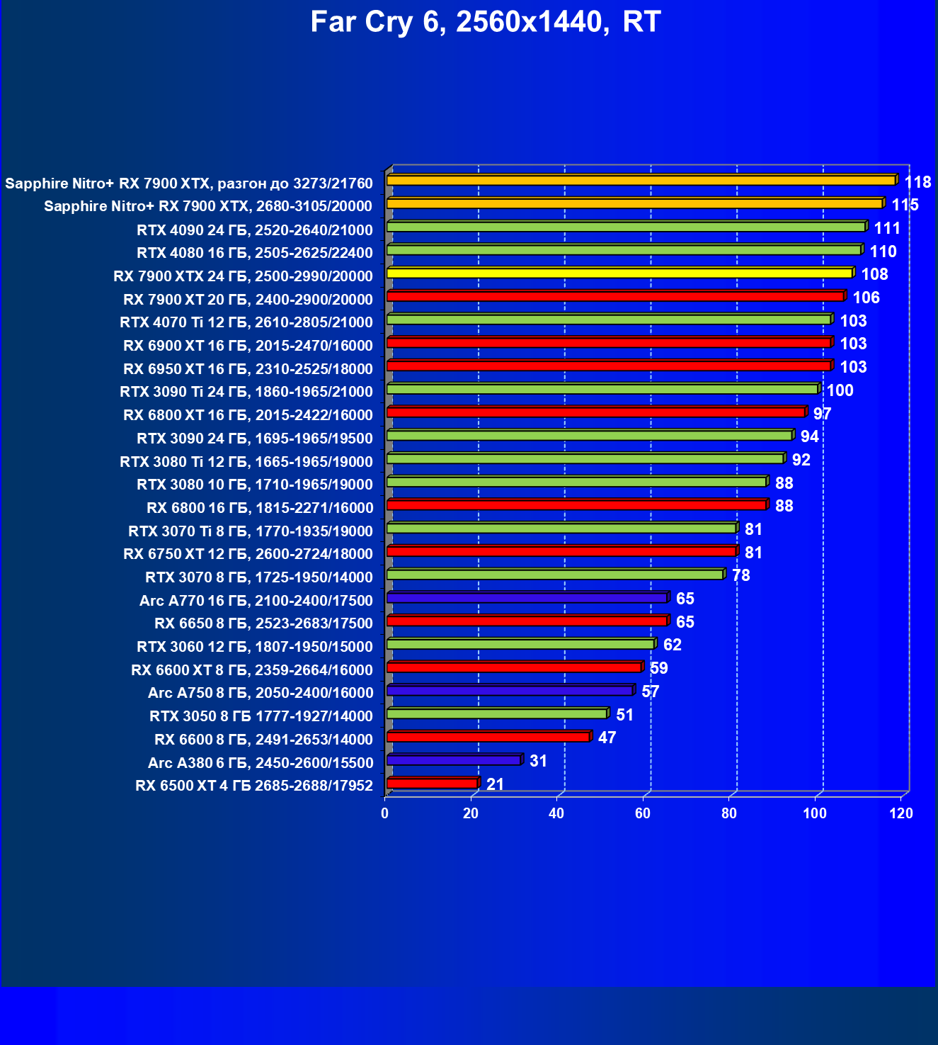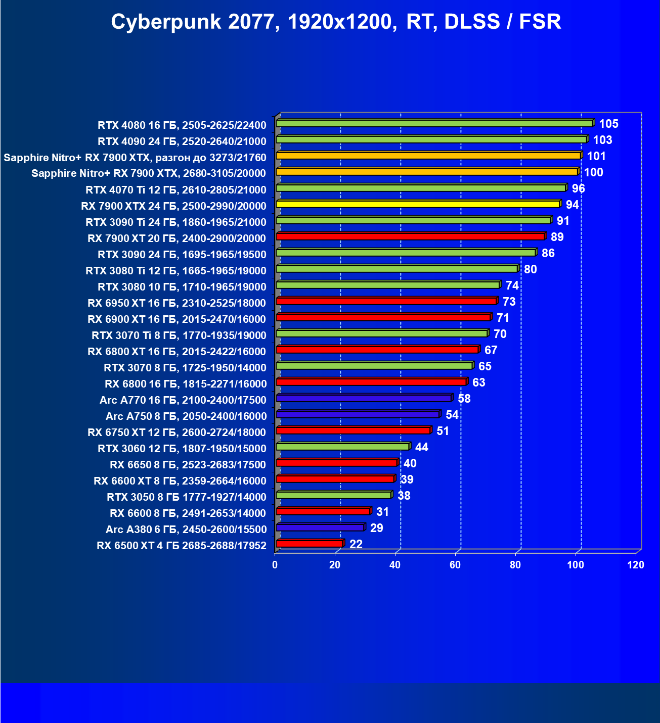 | 04 | Sapphire Nitro+ RX 7900 XTX, 2680—3105/20000 | 864 | 79 | 110 000 |