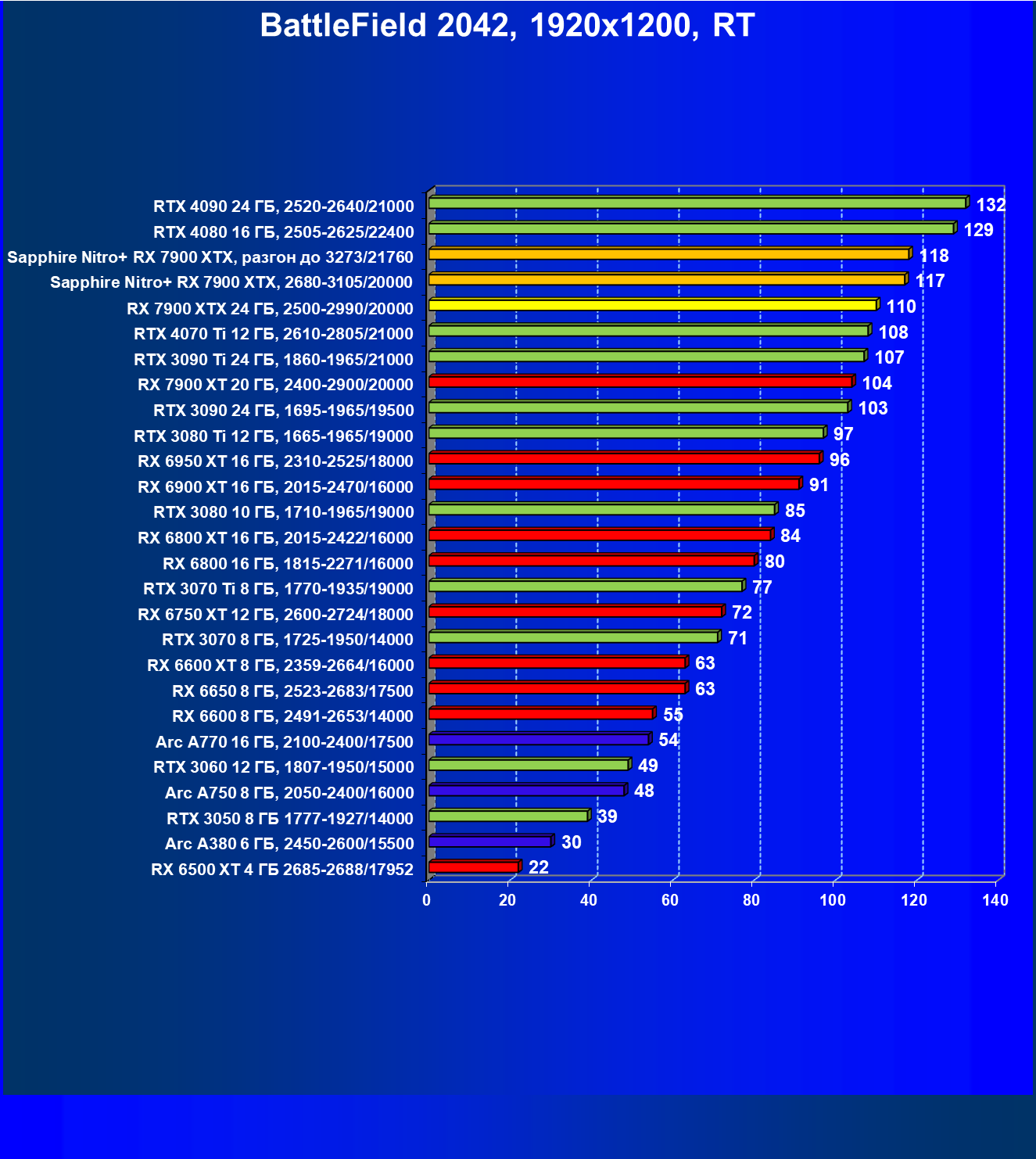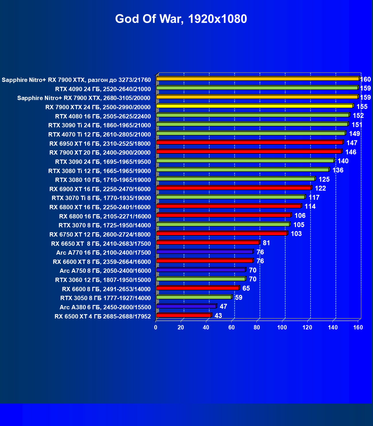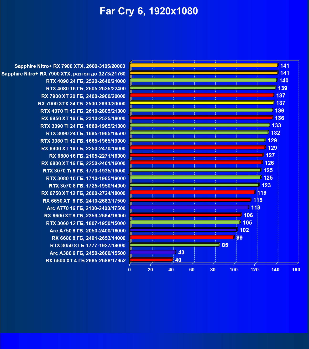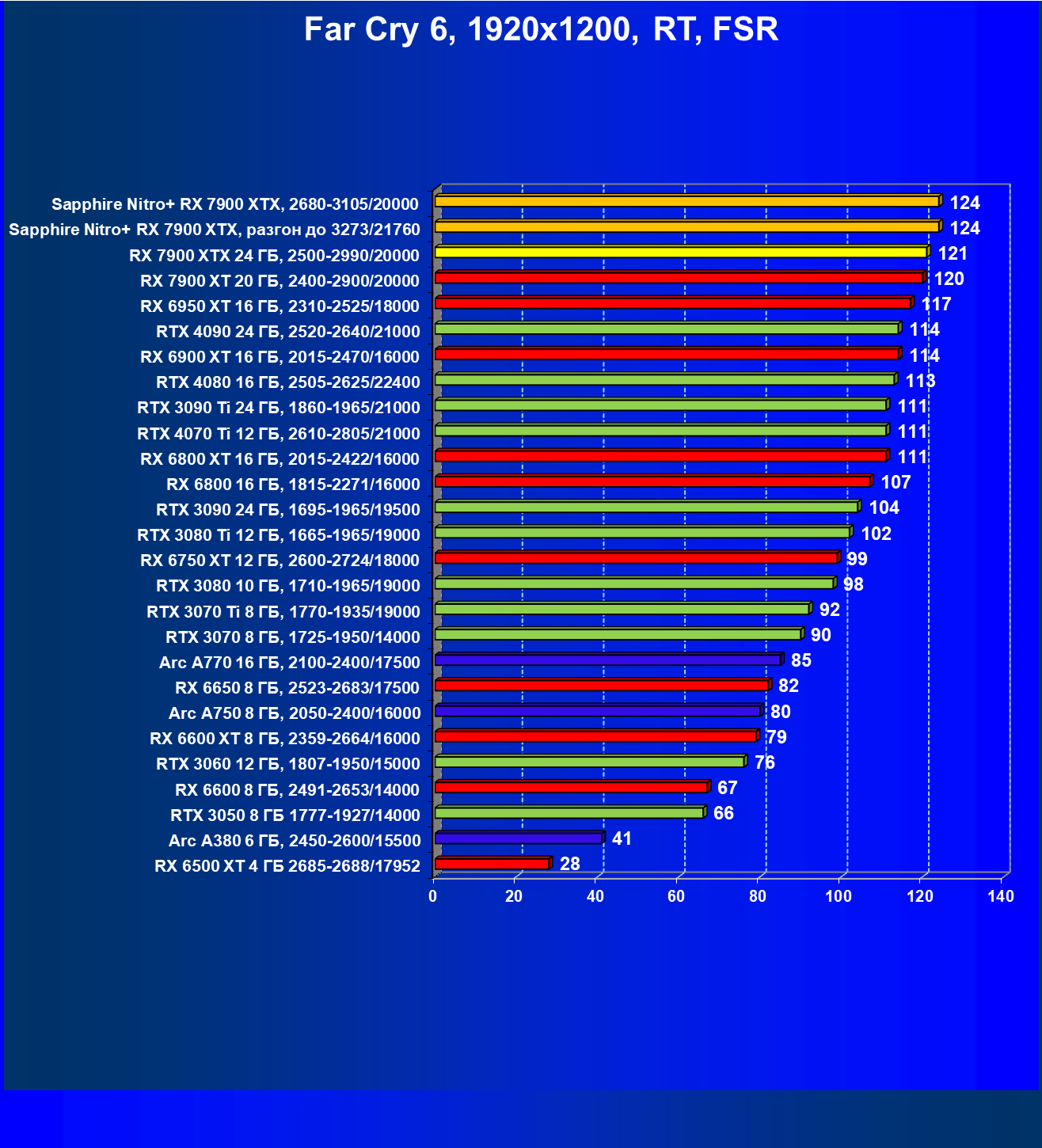 | 04 | Sapphire Nitro+ RX 7900 XTX, 2680—3105/20000 | 864 | 79 | 110 000 |