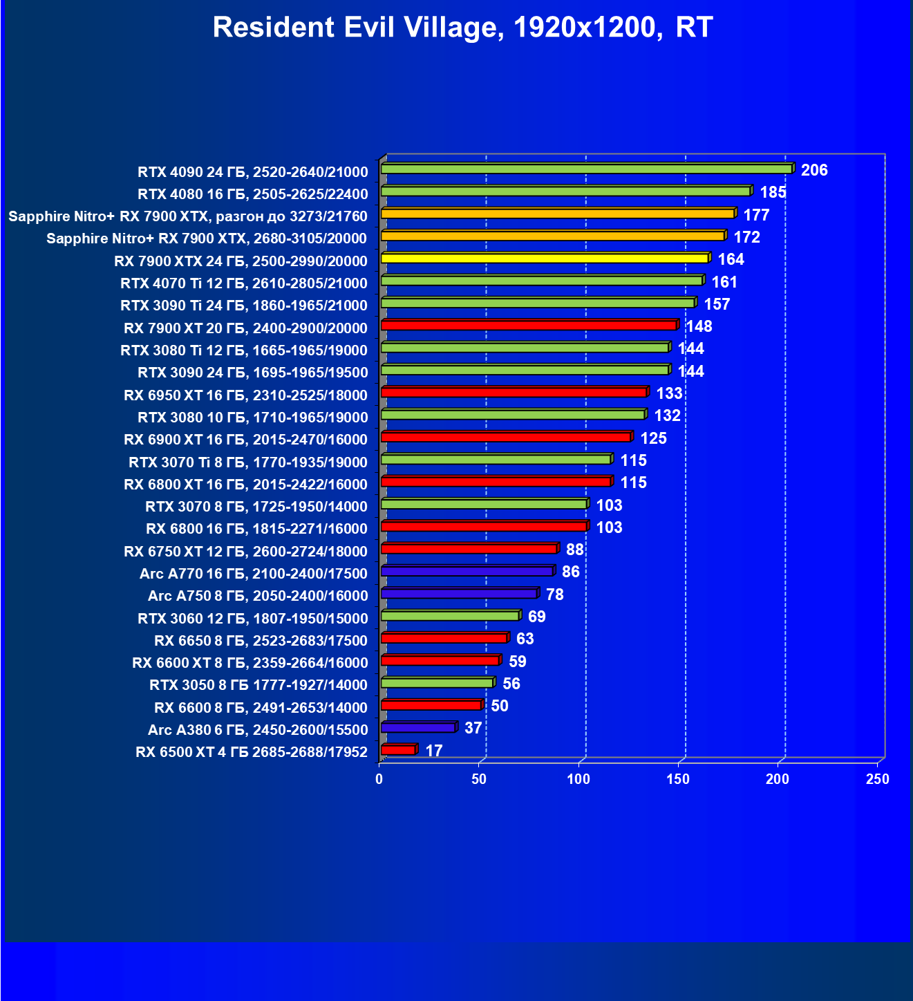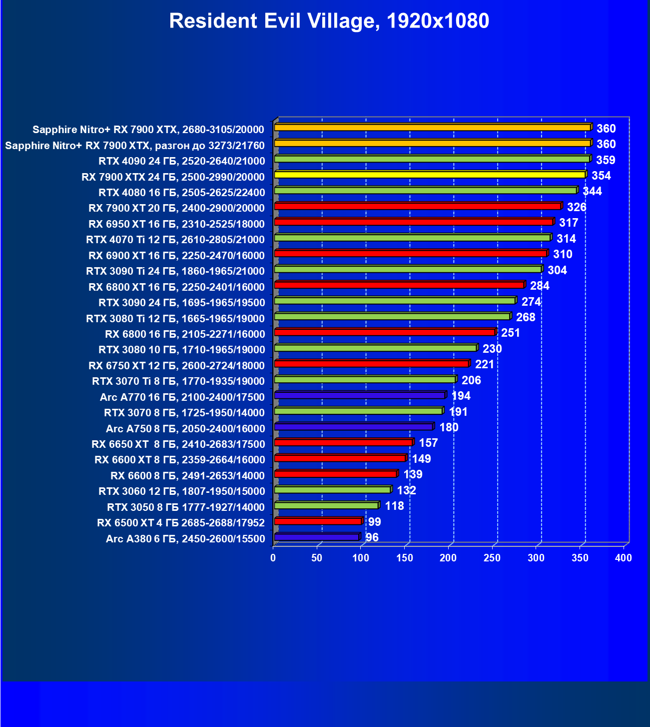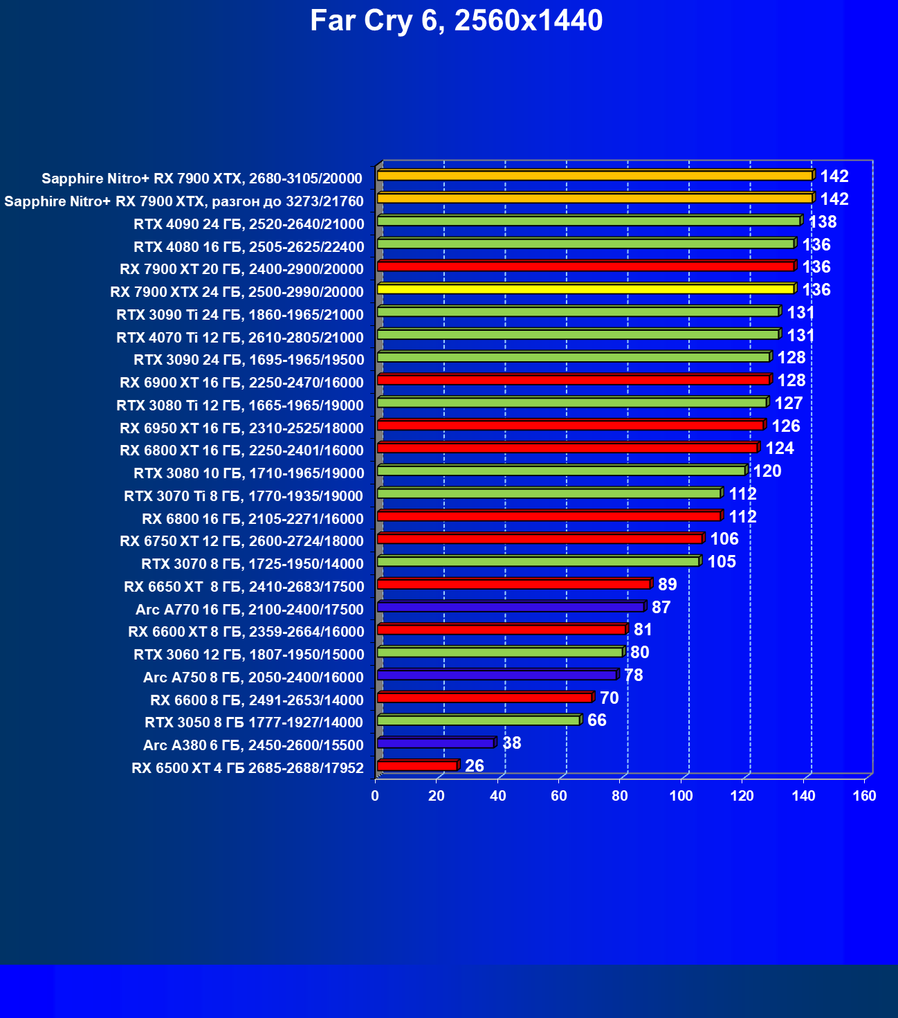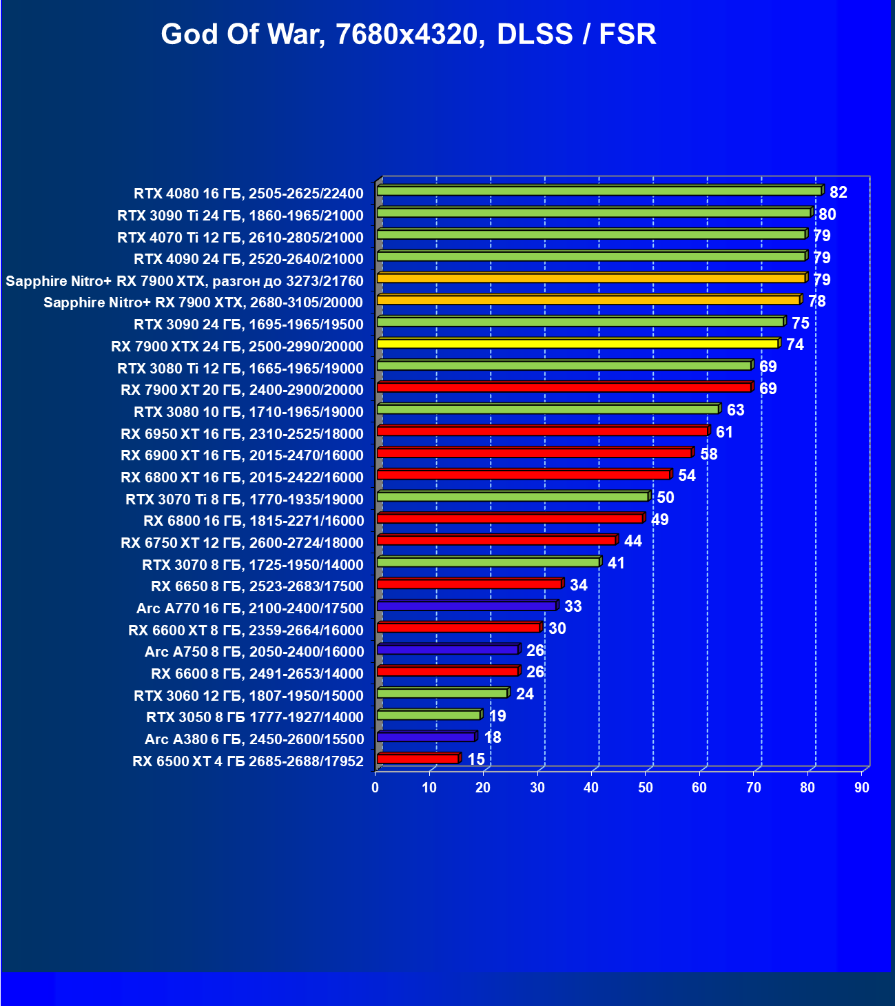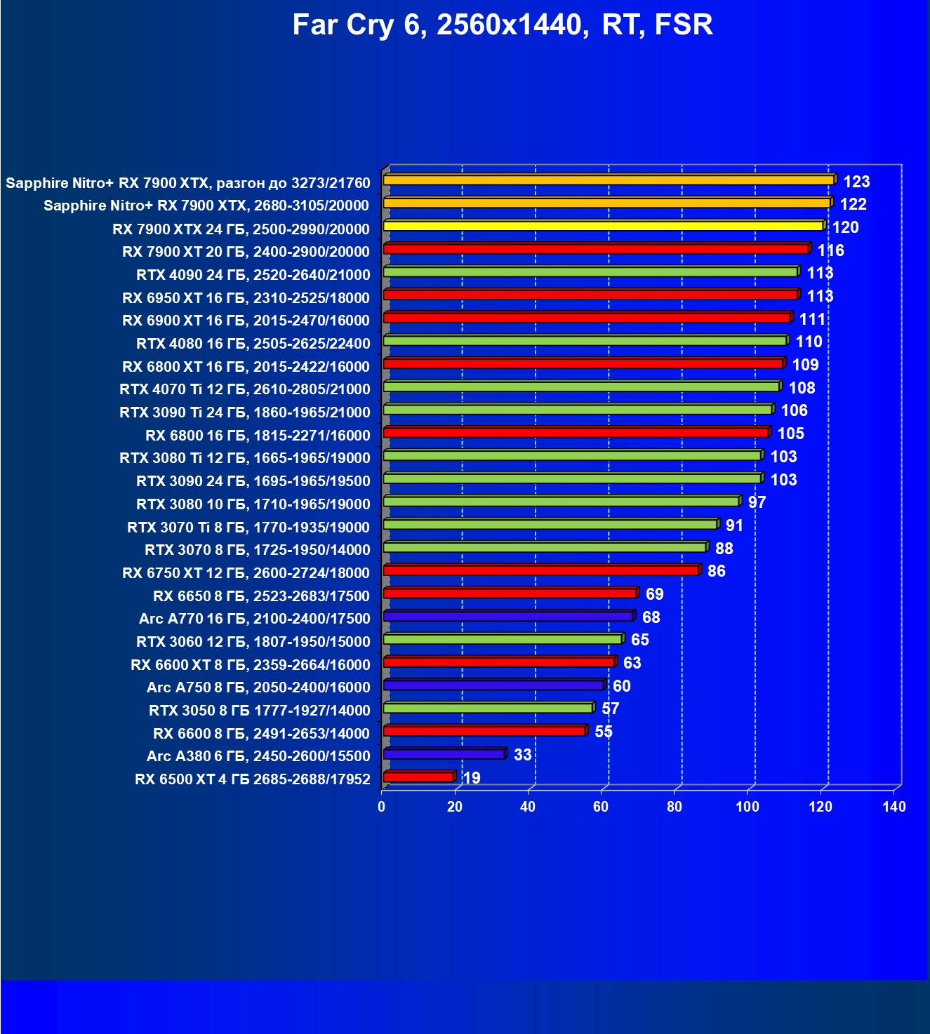 | 04 | Sapphire Nitro+ RX 7900 XTX, 2680—3105/20000 | 864 | 79 | 110 000 |