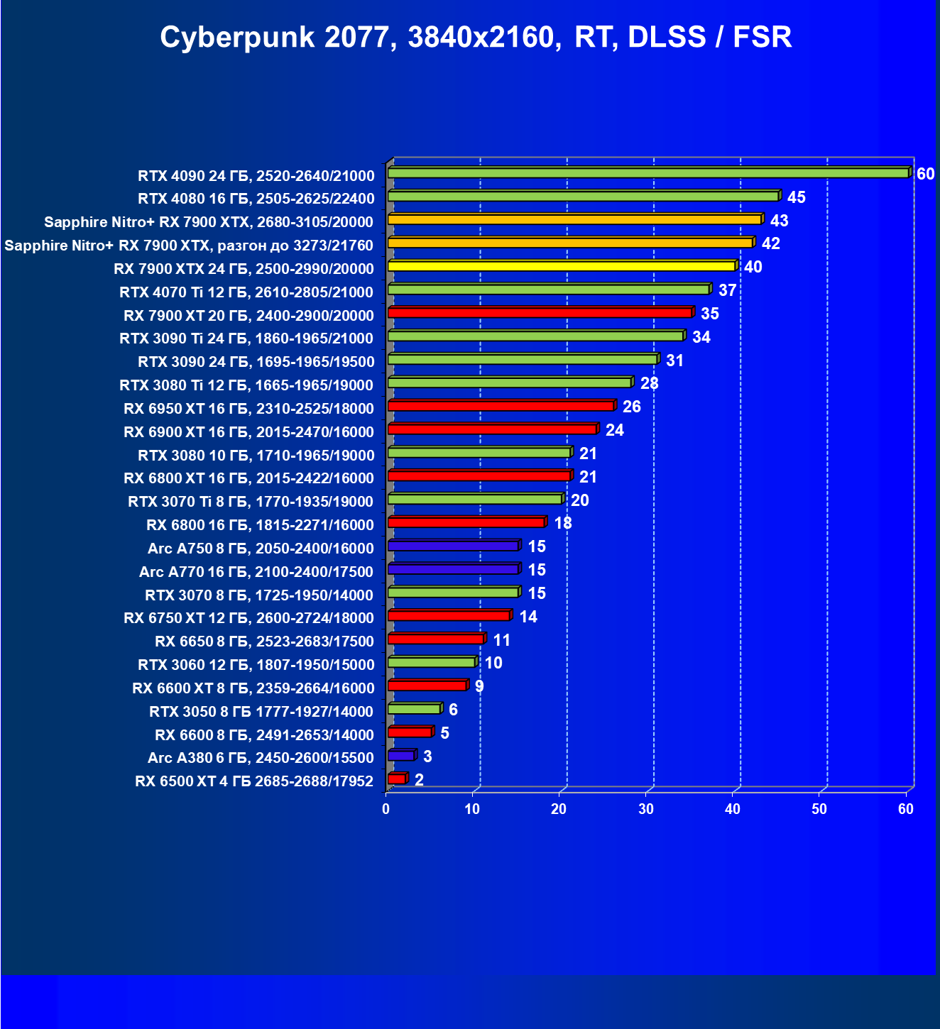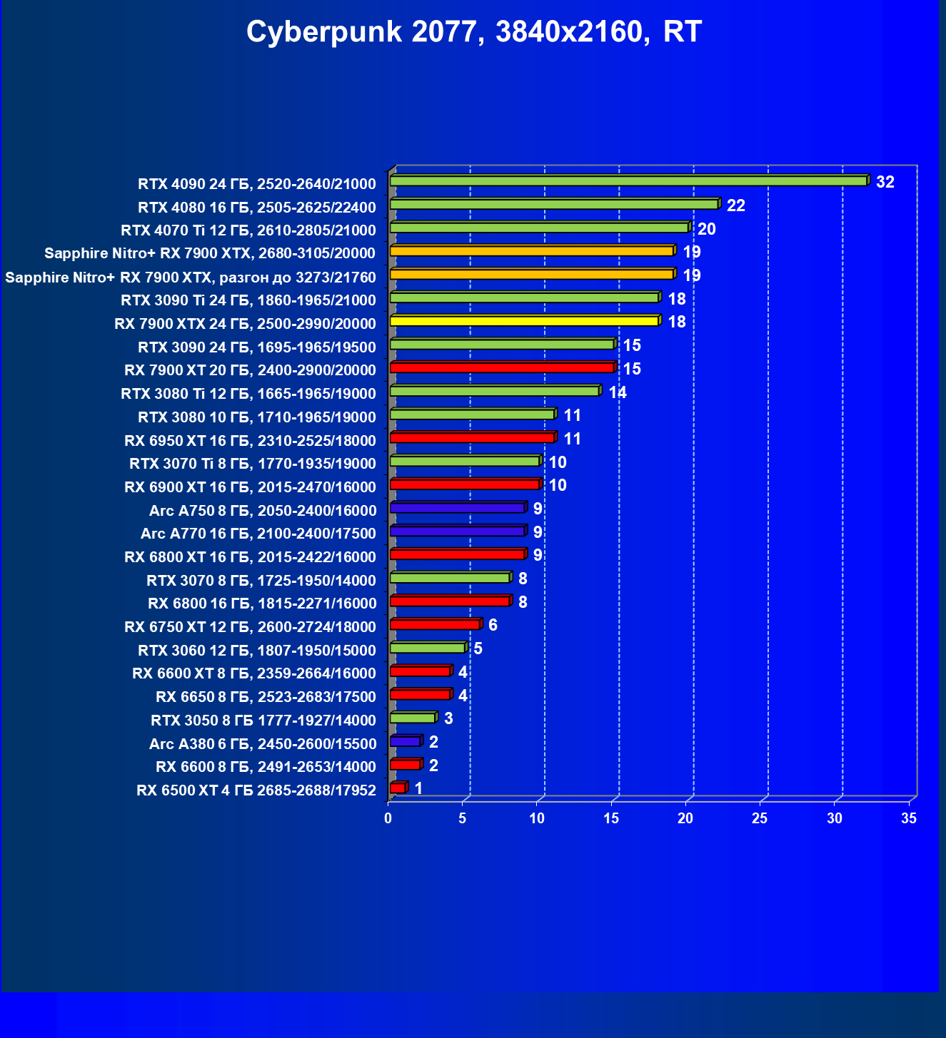 | 03 | Sapphire Nitro+ RX 7900 XTX, разгон до 3273/21760 | 874 | 79 | 110 000 |