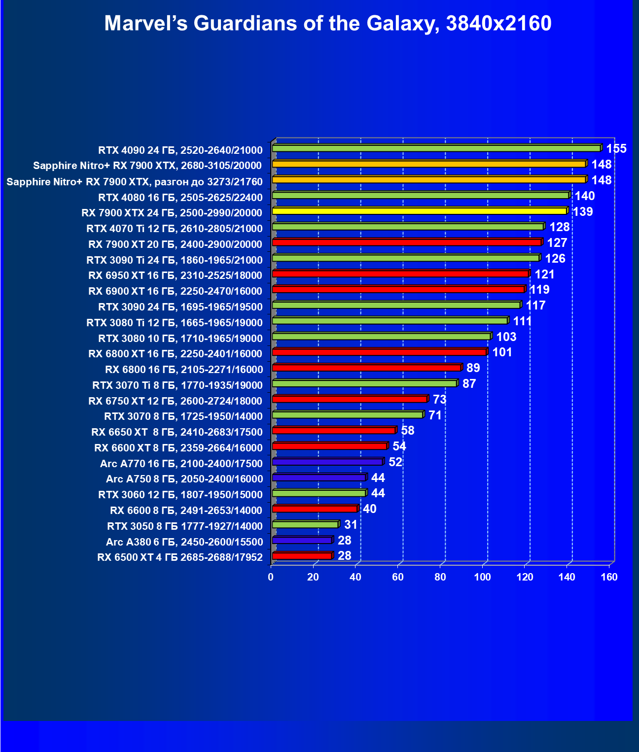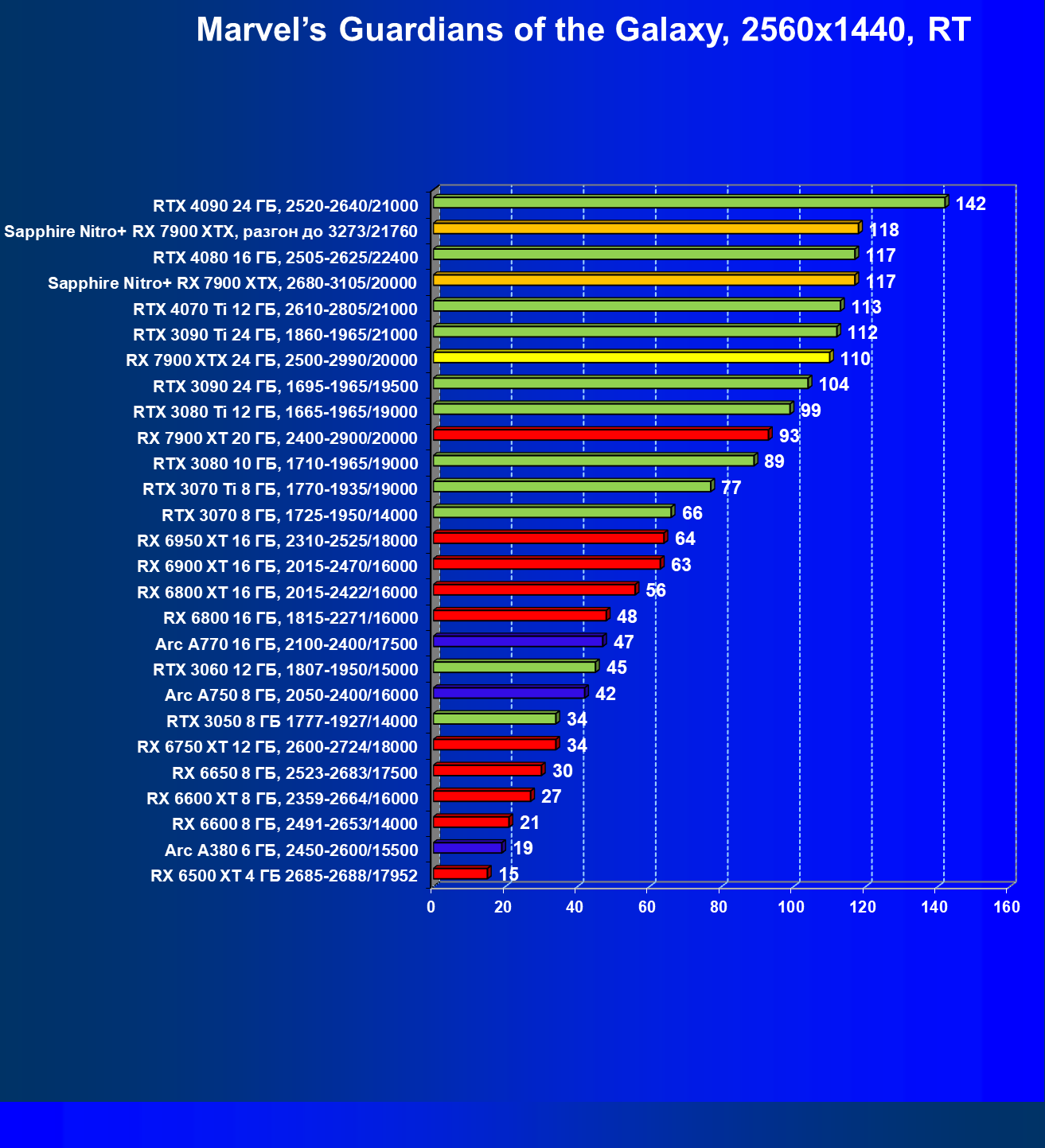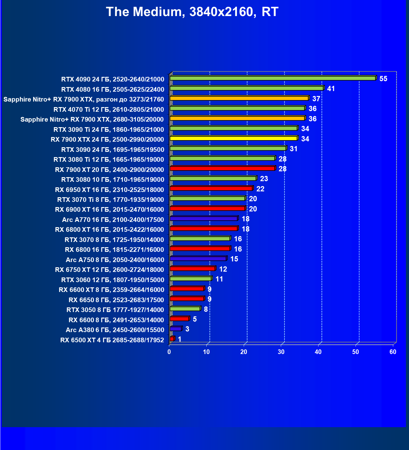 | 03 | Sapphire Nitro+ RX 7900 XTX, 2680—3105/20000 | 566 | 51 | 110 000 |