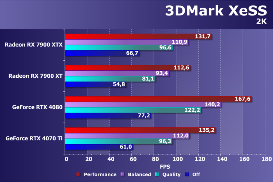 Ранее в случаях с GeForce RTX 4080/4090 изюминкой нового ускорителя мы называли поддержку разрешения 8К, поскольку даже GeForce RTX 4080 уже обладает достаточной производительностью, чтобы некоторые игры с использованием DLSS обеспечивали игроку нормальный комфорт на максимальных настройках графики в 8К (а когда в игры массово внедрят поддержку DLSS 3, комфорт станет еще выше). В ту же когорту входит и Radeon RX 7900 XTX, обеспечивающий приемлемый FPS в таком разрешении, правда в целом таких игр уже наберется немного. И когда начнется более-менее широкое внедрение DLSS 3, это поможет GeForce RTX 4080 сильно выиграть у соперника (пока с продвижением DLSS 3 дела идут медленно).
