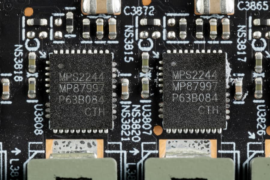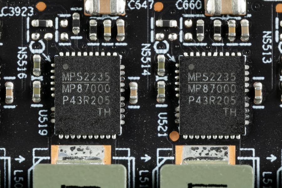 С другой стороны, из-за необходимости реализации быстрых каналов связи между чиплетами могла увеличиться общая площадь кристаллов. Сравним ближайших конкурентов по количеству транзисторов и размерам кристаллов. Чип AD103, используемый в RTX 4080, имеет 45,9 млрд транзисторов и площадь в 369 мм², а Navi 31 имеет общую площадь всех чиплетов в 522 мм² и 57,7 млрд транзисторов. Гипотетический монолитный чип с такими параметрами был бы перебором по сложности и себестоимости, да и чиплетная организация вряд отличается немалыми накладными расходами — часть площади и транзисторов расходуются на то, что не влияет на производительность, а только на поддержку связи между кристаллами.