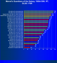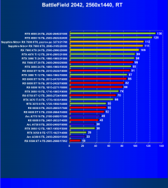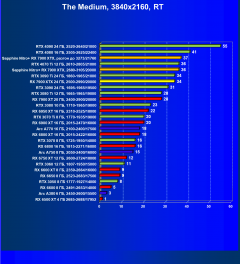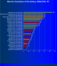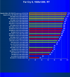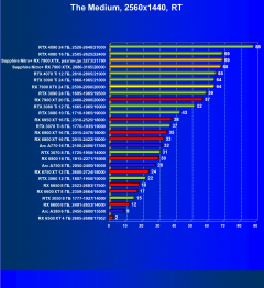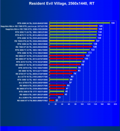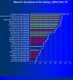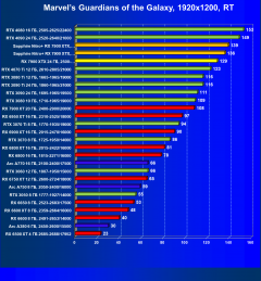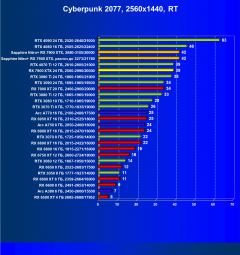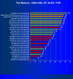 При включении же трассировки лучей даже GeForce RTX 4090 является более выгодным приобретением, нежели флагманы AMD, не говоря уж про GeForce RTX 4080. Карта Sapphire хоть и имеет повышенные частоты работы, однако при этом и чуть дороже, поэтому до уровня GeForce RTX 4080 ей в этом рейтинге всё равно далеко.