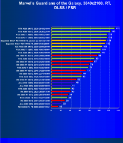 Результаты тестов с включенной аппаратной трассировкой лучей и DLSS/FSR в разрешении 7680×4320 (8К)