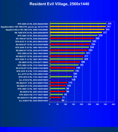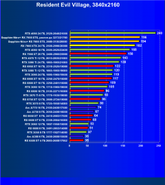 В данном случае, если смотреть в целом по всем тестам и разрешениям, Radeon RX 7900 XTX уже отстает от конкурента в лице GeForce RTX 4080 на 8% (в разрешении 4K — на 10%), при этом он еще и чуть дороже. Карта Sapphire быстрее референс-аналога на 5,2%, то есть отставание от GeForce RTX 4080 стало менее драматичным: 3,5%. Radeon RX 7900 XTX в среднем на 9,3% быстрее, чем Radeon RX 7900 XT (в разрешении 4K — на 15%).