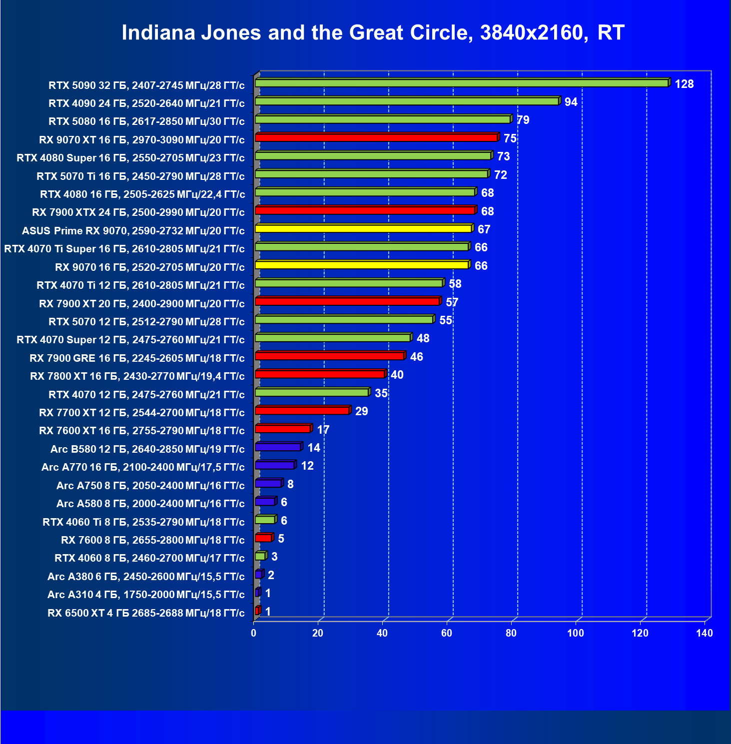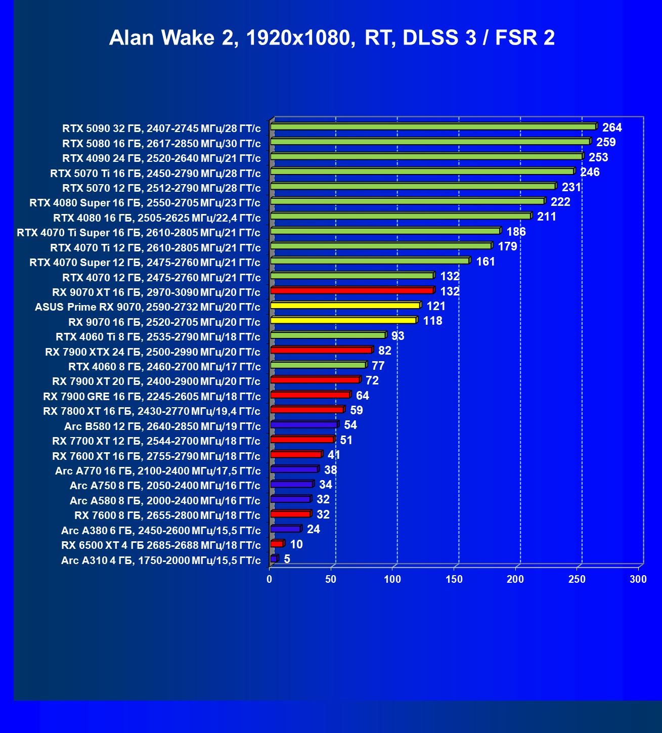 | 12 | Asus Prime RX 9070, 2590—2732 МГц/20 ГТ/с | 386 | 3475 | 90 000 |