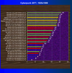 | 08 | RTX 4070 Ti Super 16 ГБ, 2610—2805 МГц/21 ГТ/с | 438 | 4466 | 102 000 |