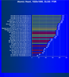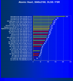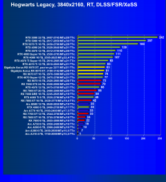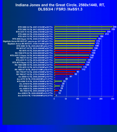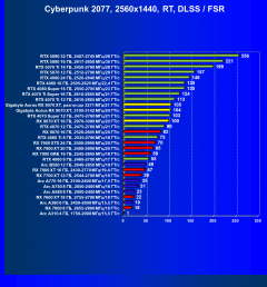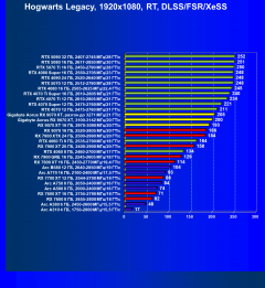 Результаты тестов со включенной аппаратной трассировкой лучей и/или DLSS/FSR/XeSS в разрешениях 1920×1080, 2560×1440 и 3840×2160