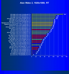 | 12 | RTX 4070 Ti Super 16 ГБ, 2610—2805 МГц/21 ГТ/с | 1587 | 156 | 102 000 |