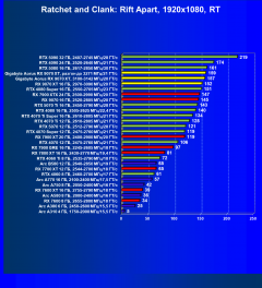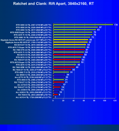 Зато GeForce RTX 4070 Ti Super оказался быстрее на 11%, а GeForce RTX 5070 Ti — на 44%. Здесь сыграло роль активное использование DLSS с многокадровой генерацией в 4 играх из 10, а технология AMD FSR4 (аналог многокадровой генерации) пока еще не работает в тех же играх. Ждем нужного обновления для Ratchet & Clark).