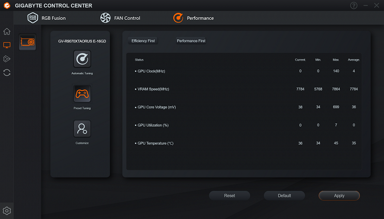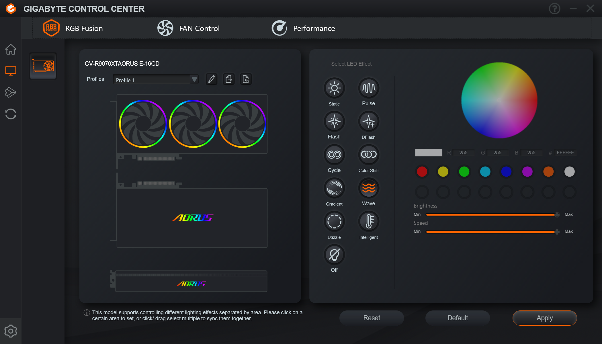 Отметим, что синхронизация подсветки возможна только с материнскими платами Gigabyte, но при этом выбор сценариев сокращается. Возможности синхронизации подсветки с иными материнскими платами нет.