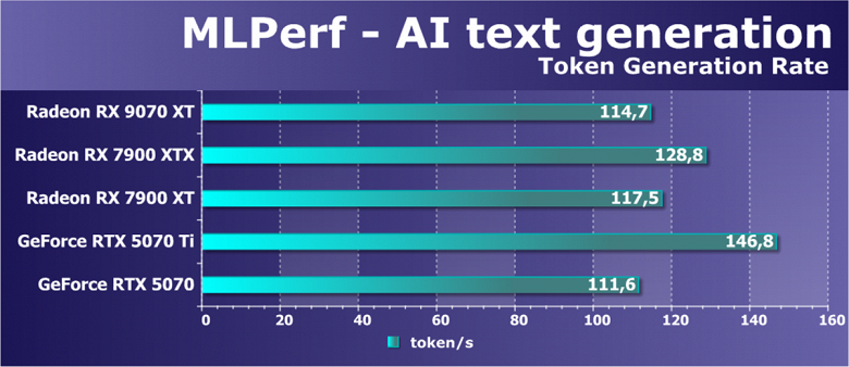 AMD приводит пример того, как это сказывается на производительности при использовании нейросети Stable Diffusion XL, в которой Radeon RX 9070 XT сравнивалась с Radeon RX 7900 XT. По вычислительным блокам новинка отстает от более старого решения более чем на 30%, но Radeon RX 9070 XT показывает почти двукратную производительность от Radeon RX 7900 XT, так что этот прирост будет весьма полезен для всех задач ИИ и машинного обучения, включая масштабирование FSR 4. В других реальных задачах разница поменьше, конечно, но тоже немалая: