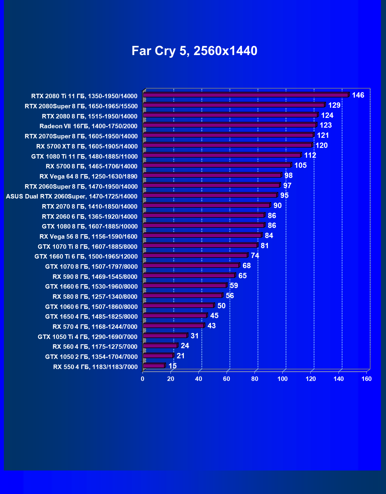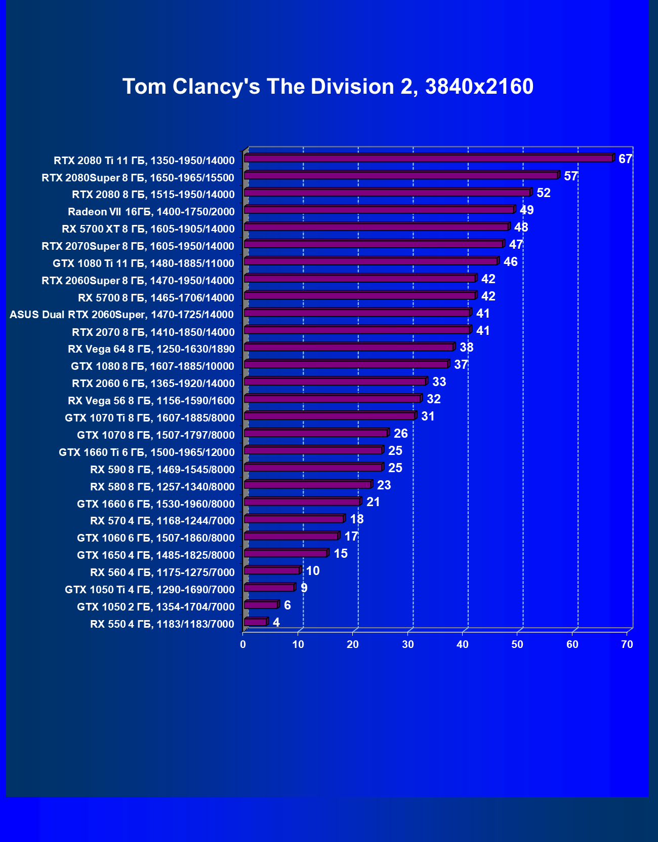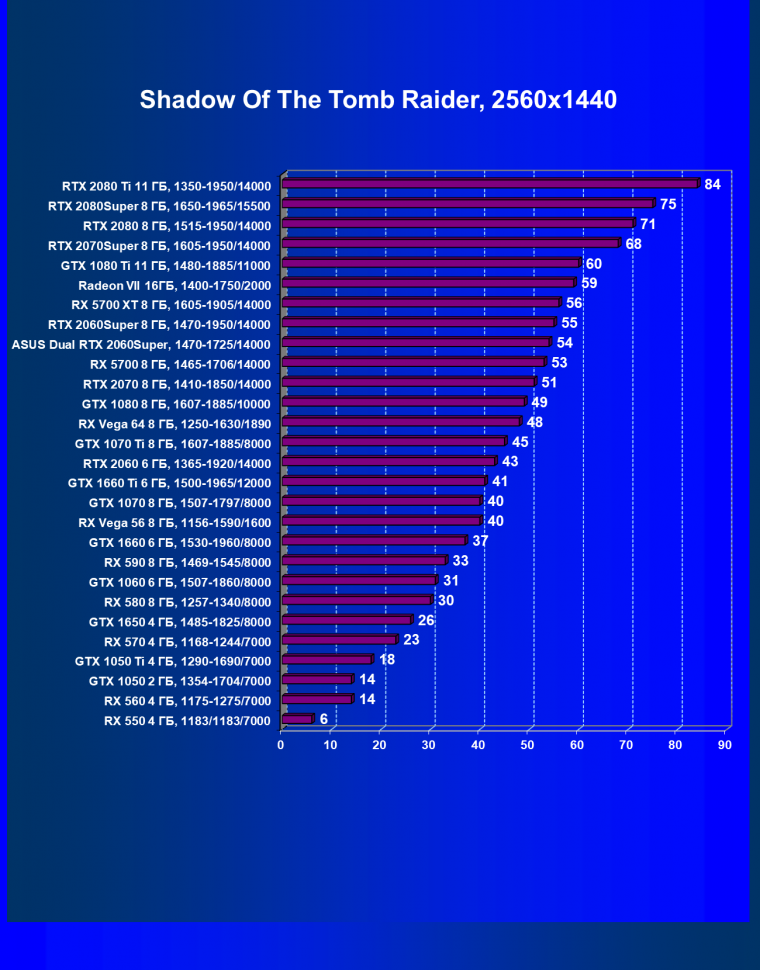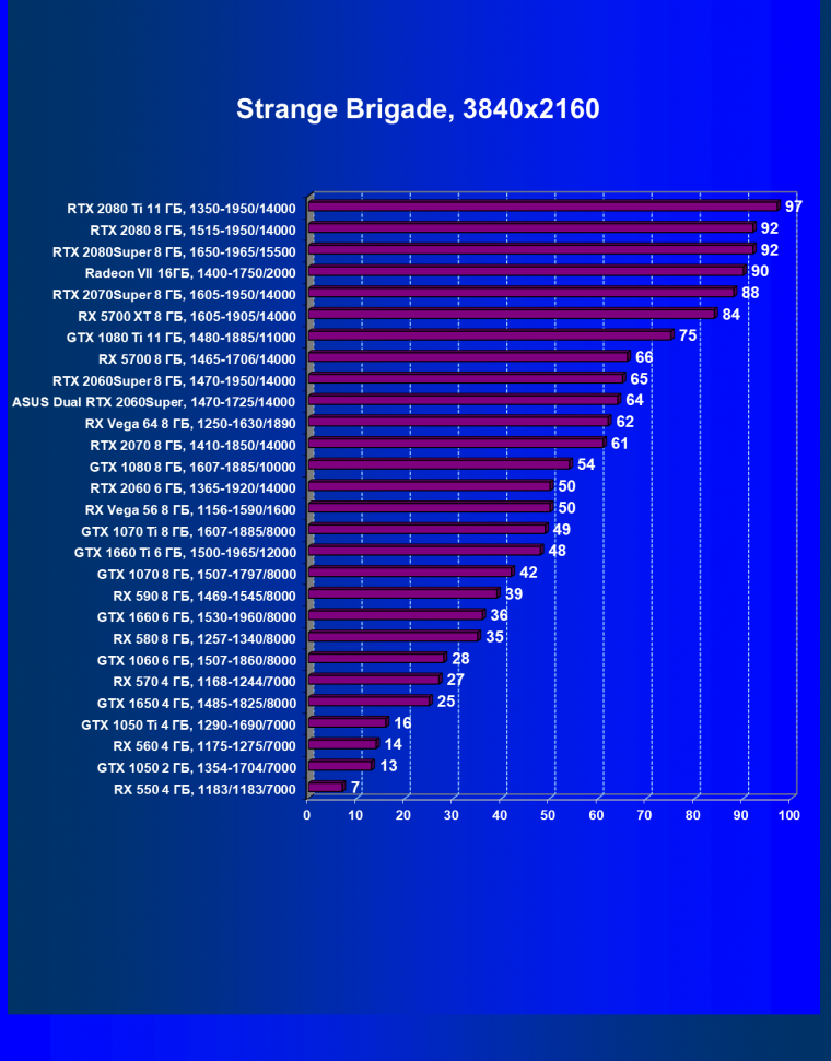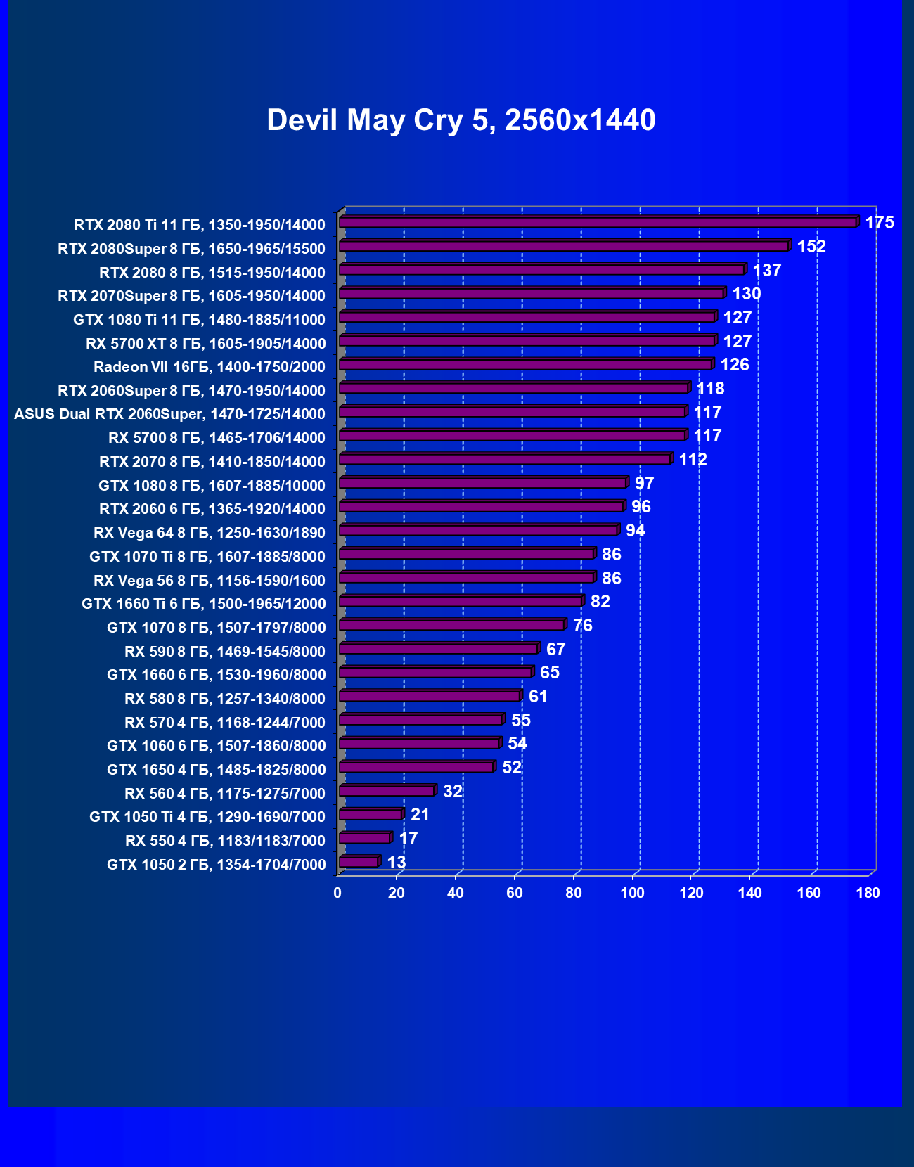 | 10 | Asus Dual RTX 2060 Super, 1470—1725/14000 | 293 | 820 | 28 000 |