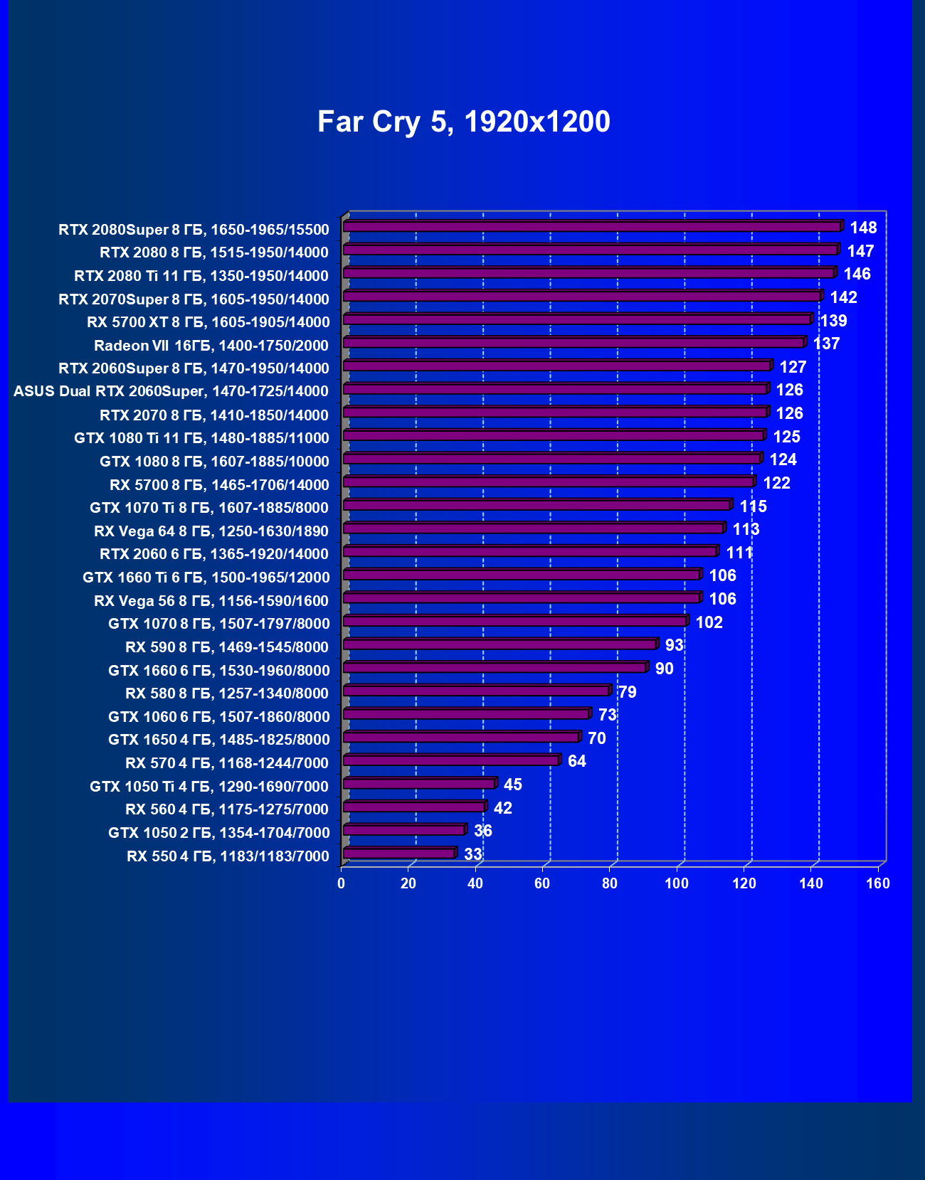 На момент написания материала стоимость средневзвешенного Radeon RX 5700 XT примерно равнялась стоимости не менее средневзвешенного GeForce RTX 2060 Super, но первый был чуть-чуть быстрее, потому занимал более высокую позицию в своей группе. Видеокарта Asus имеет Boost-частоту ядра чуть выше, чем у GeForce RTX 2060 Super Founders Edition, однако из-за жесткого лимита по TDP GPU карты Asus не достигал заявленного максимума в 1950 МГц, ограничиваясь величиной 1725 МГц. В таких условиях можно было бы ожидать ее сильного отставания по производительности, однако и референс-карта достигала максимума лишь в редких всплесках, частенько работая на Boost-частоте, тогда как карта Asus стабильно держала свою частоту в 1725 МГц. Тем не менее, в целом производительность оказалась чуть ниже, чем у референса (вот такой вот «ОС»).