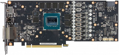 У карты изменен стандартный набор видеовыходов: добавлен дополнительный HDMI-разъем, то есть суммарно здесь 5 разъемов.