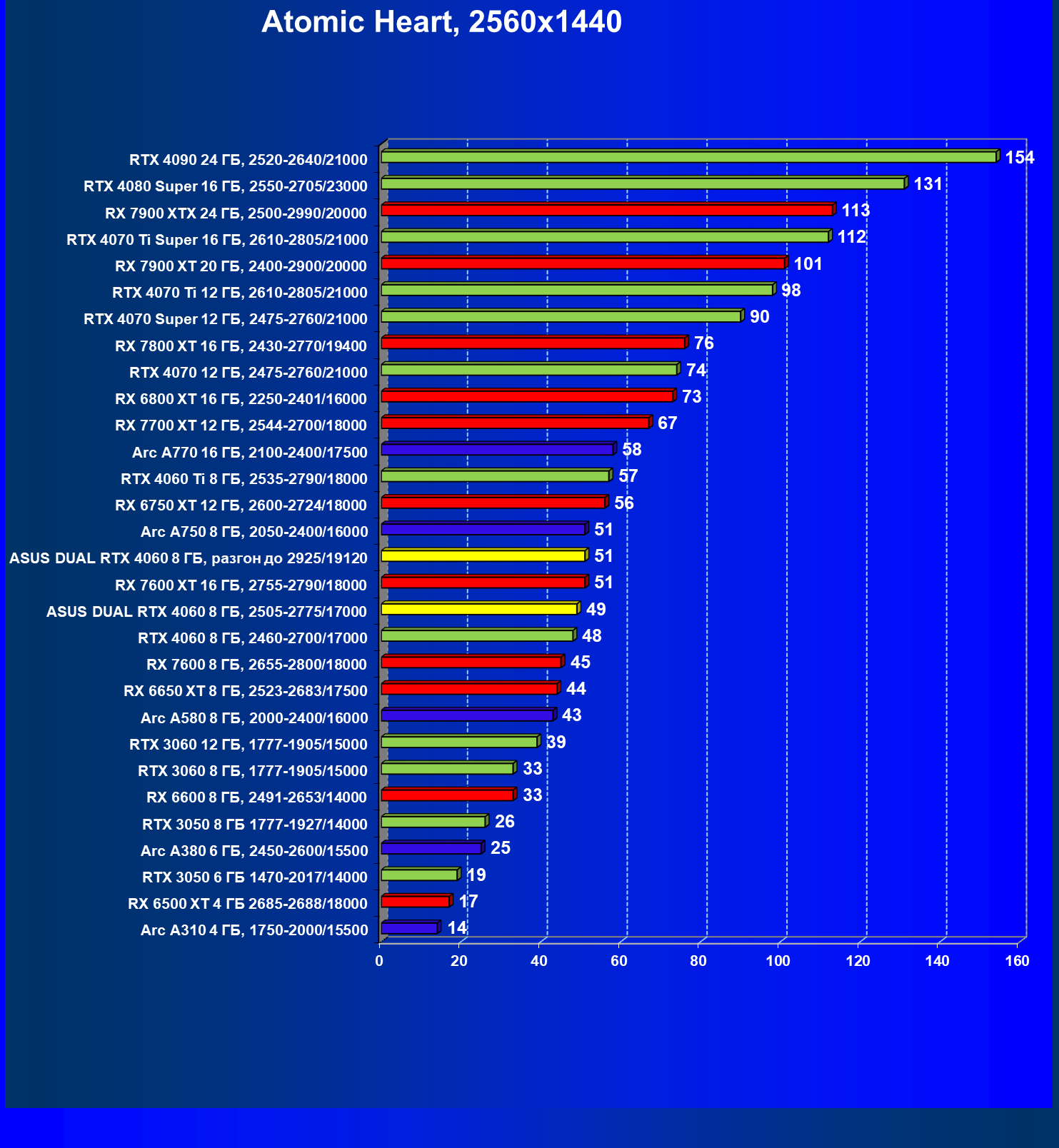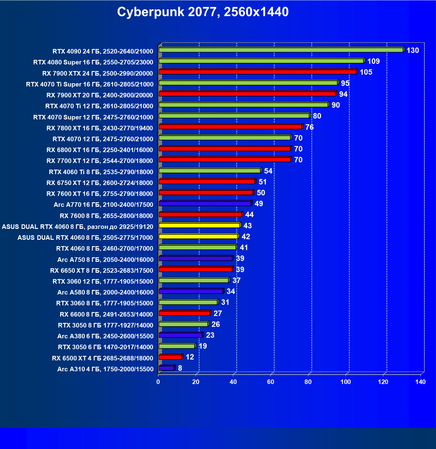 | 13 | Asus Dual RTX 4060 8 ГБ, разгон до 2925/19120 | 1329 | 415 | 32 000 |