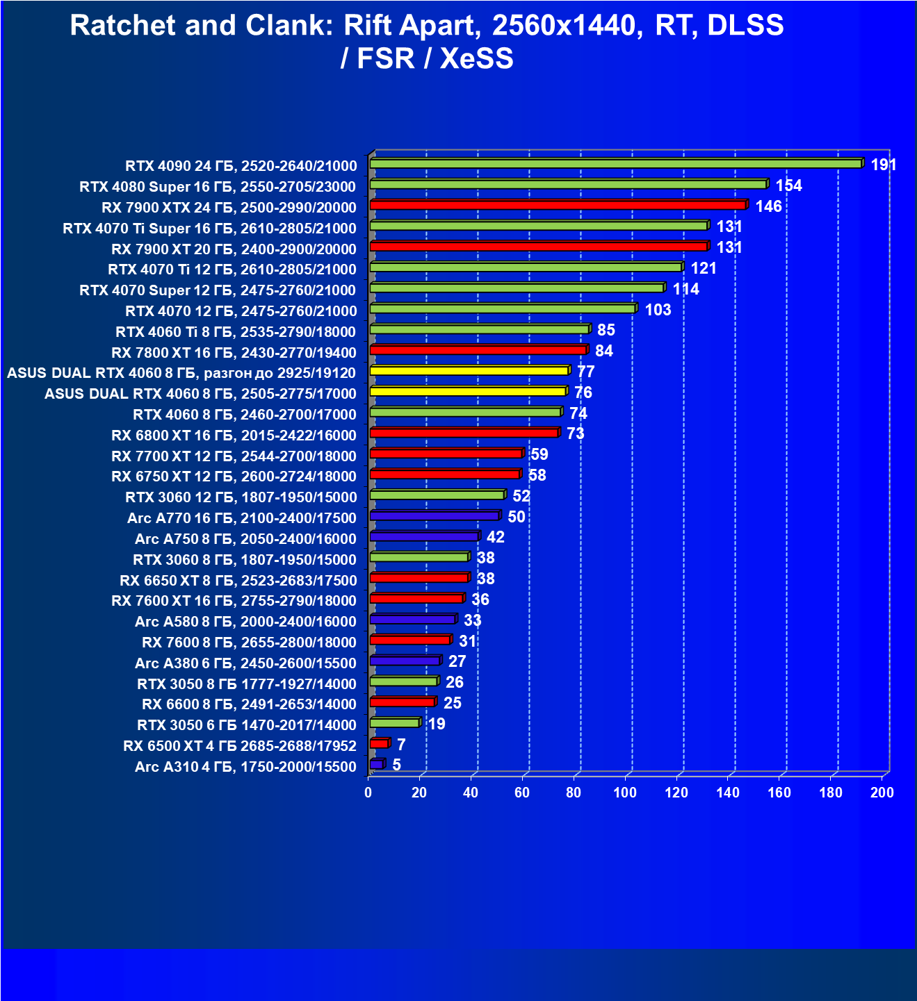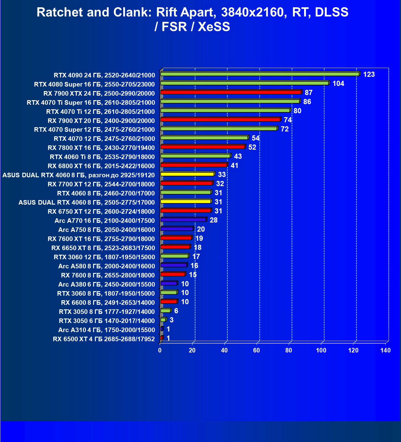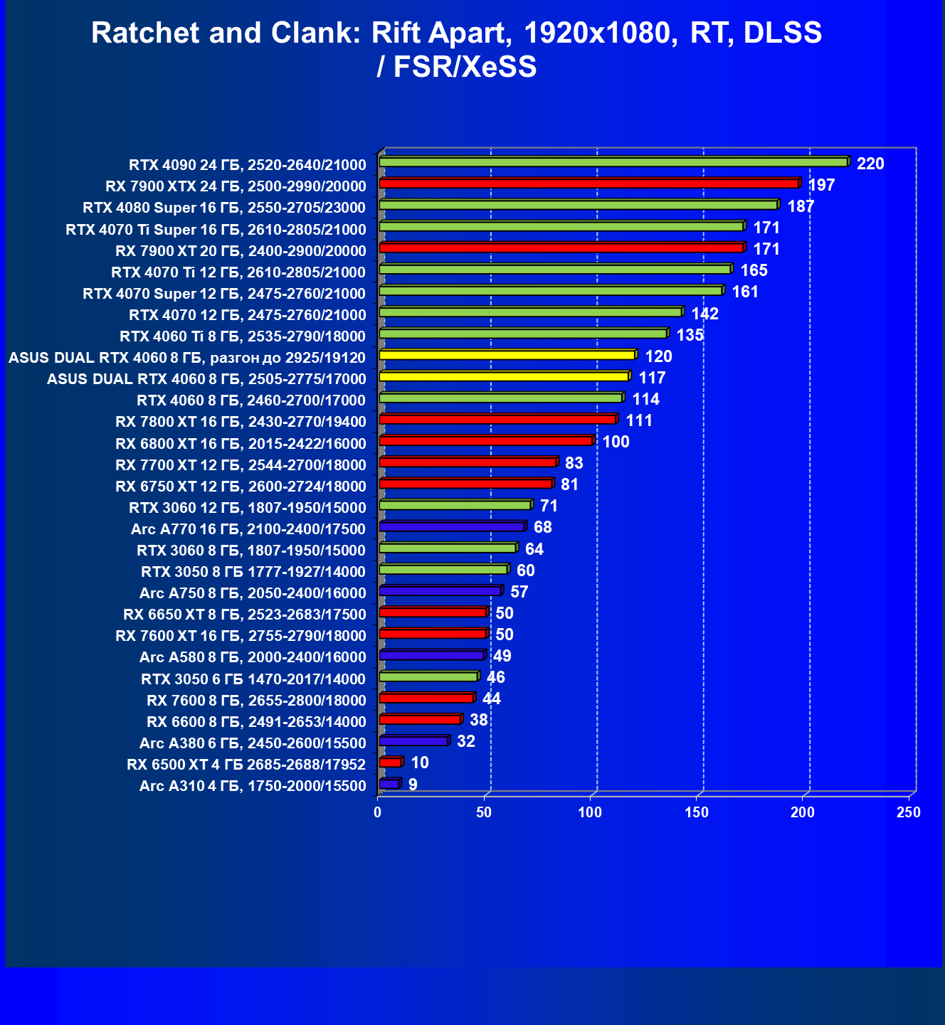- Вариант рейтинга iXBT.com с включением RT/DLSS/FSR/XeSS