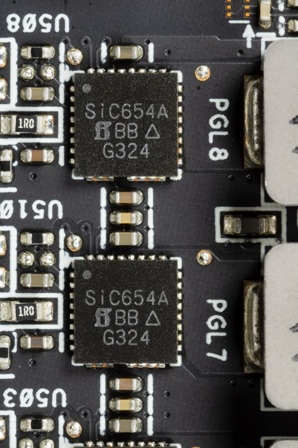 В преобразователе питания ядра используются транзисторные сборки DrMOS — в данном случае Vishay SiC654A (50 А).