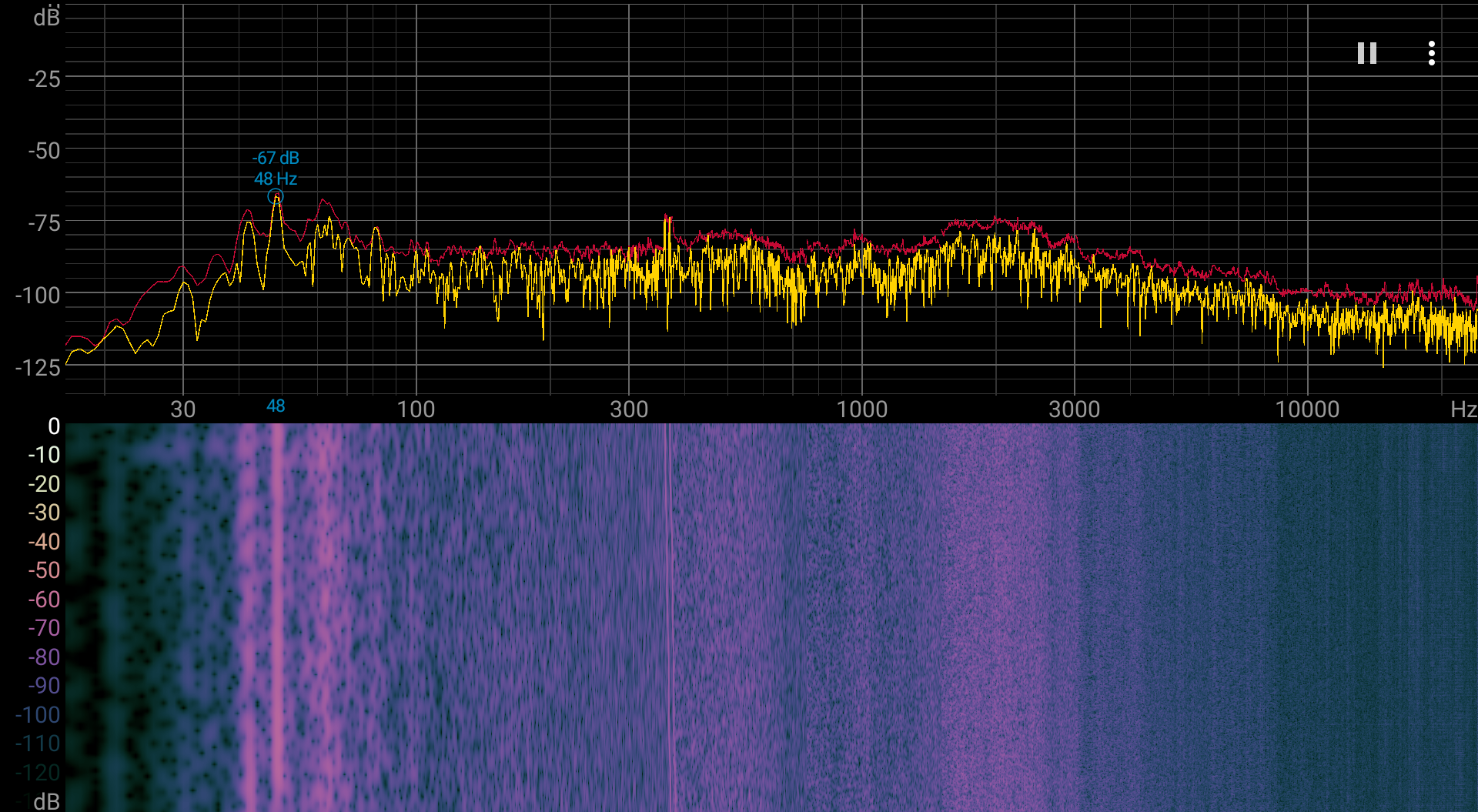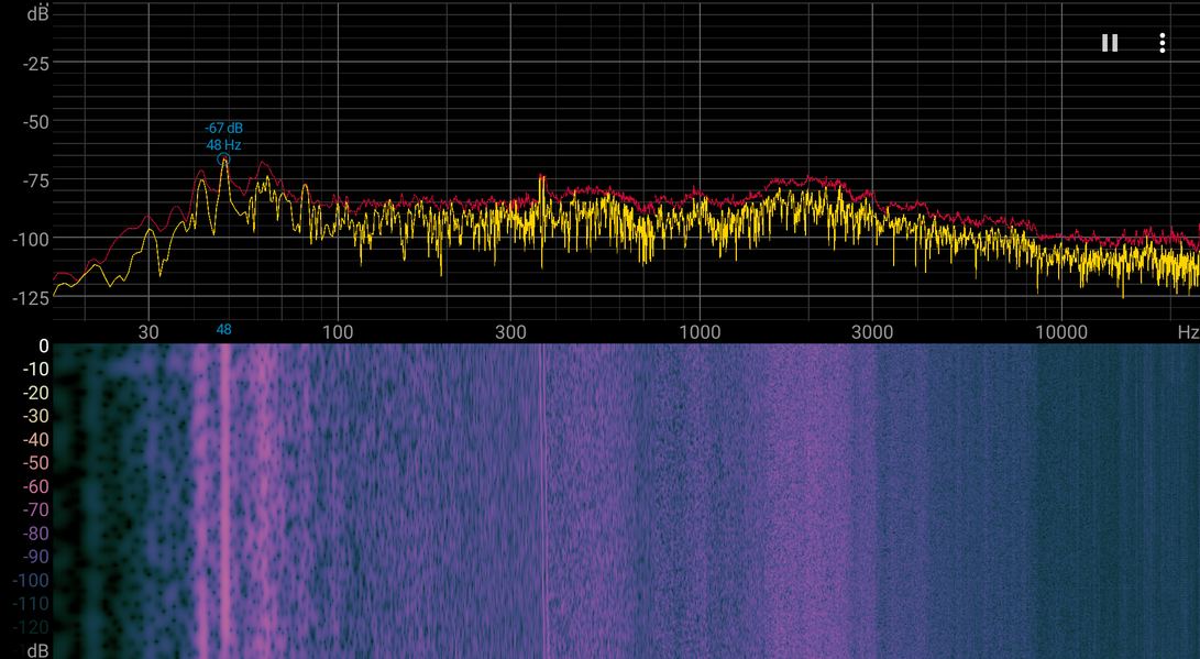 Аудиозапись шума — здесь. Спектрограмма шума проблем не выявила.