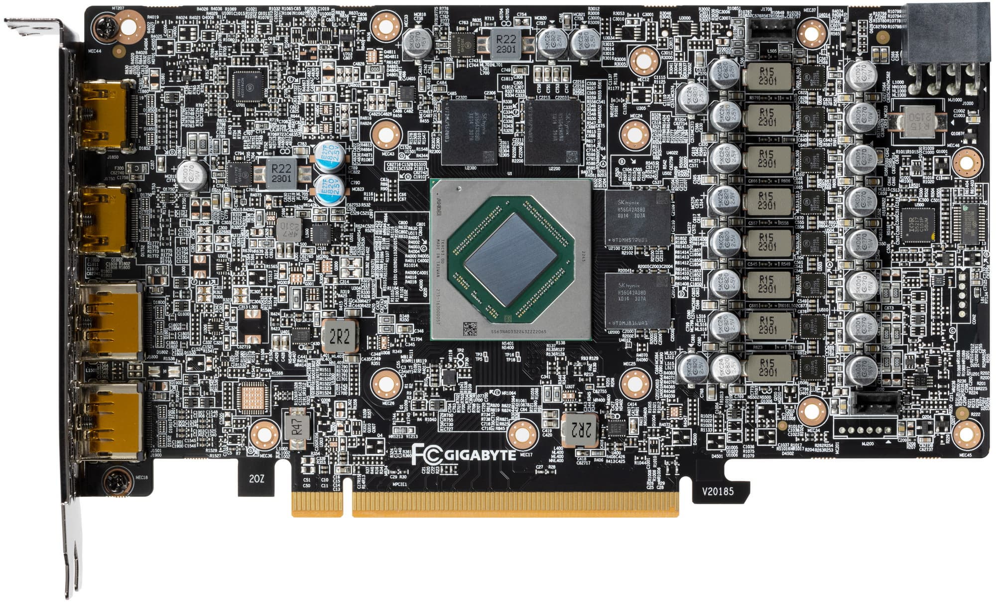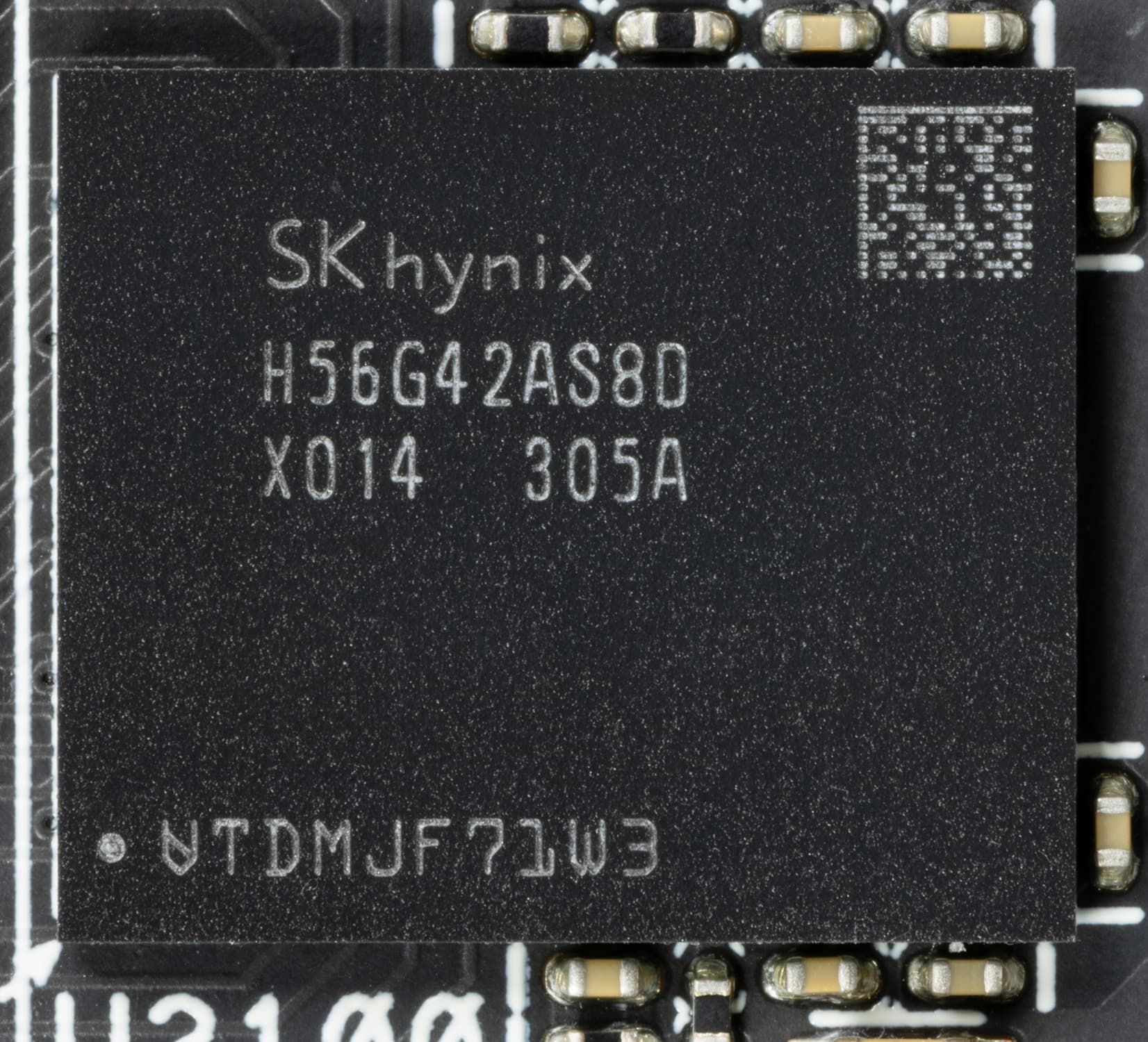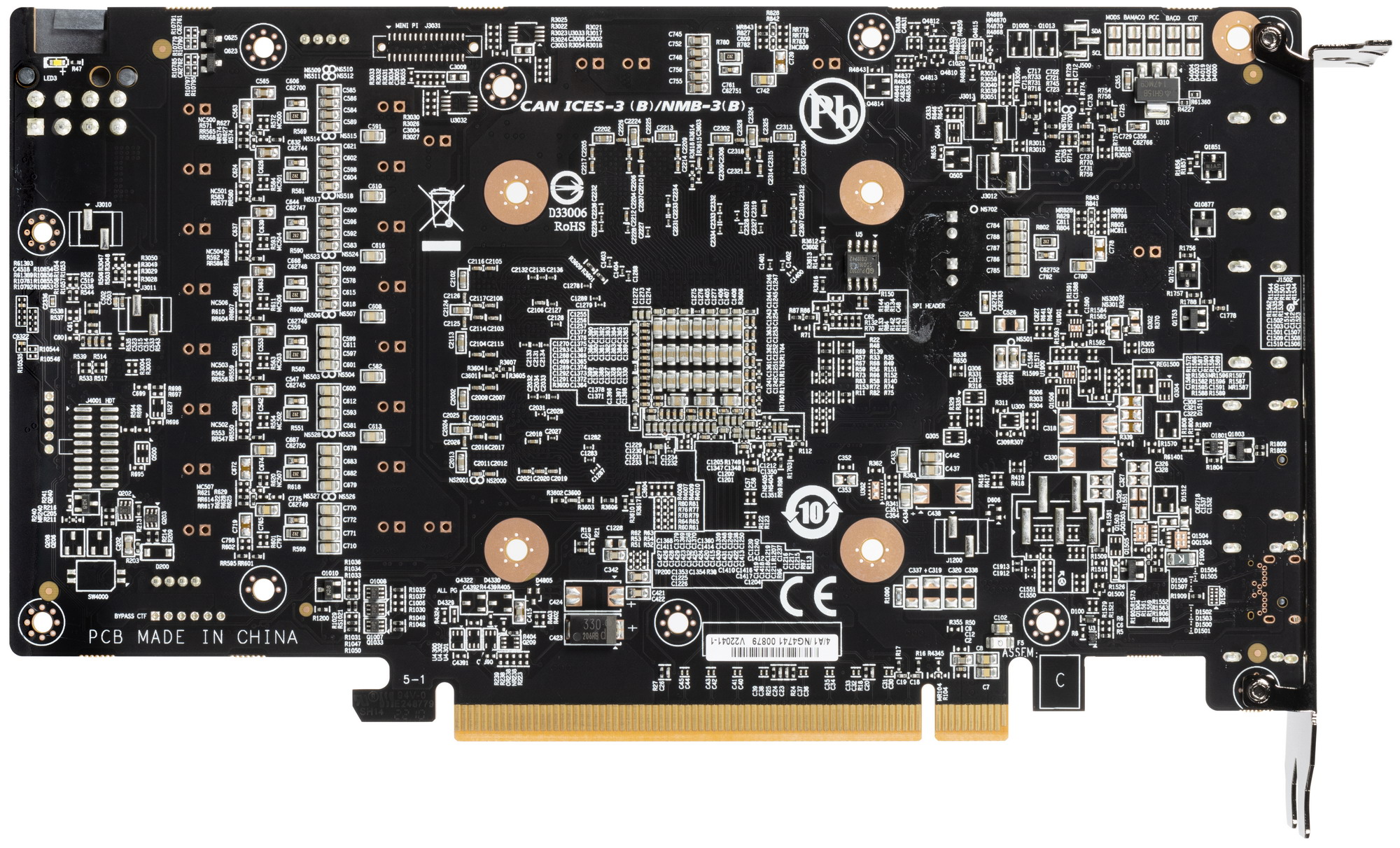 Карта имеет 8 ГБ памяти GDDR6 SDRAM, размещенной в 4 микросхемах по 16 Гбит на лицевой стороне PCB. Микросхемы памяти SKhynix (H56G42AS8DX014) рассчитаны на номинальную частоту работы в 2500 (20000) МГц.