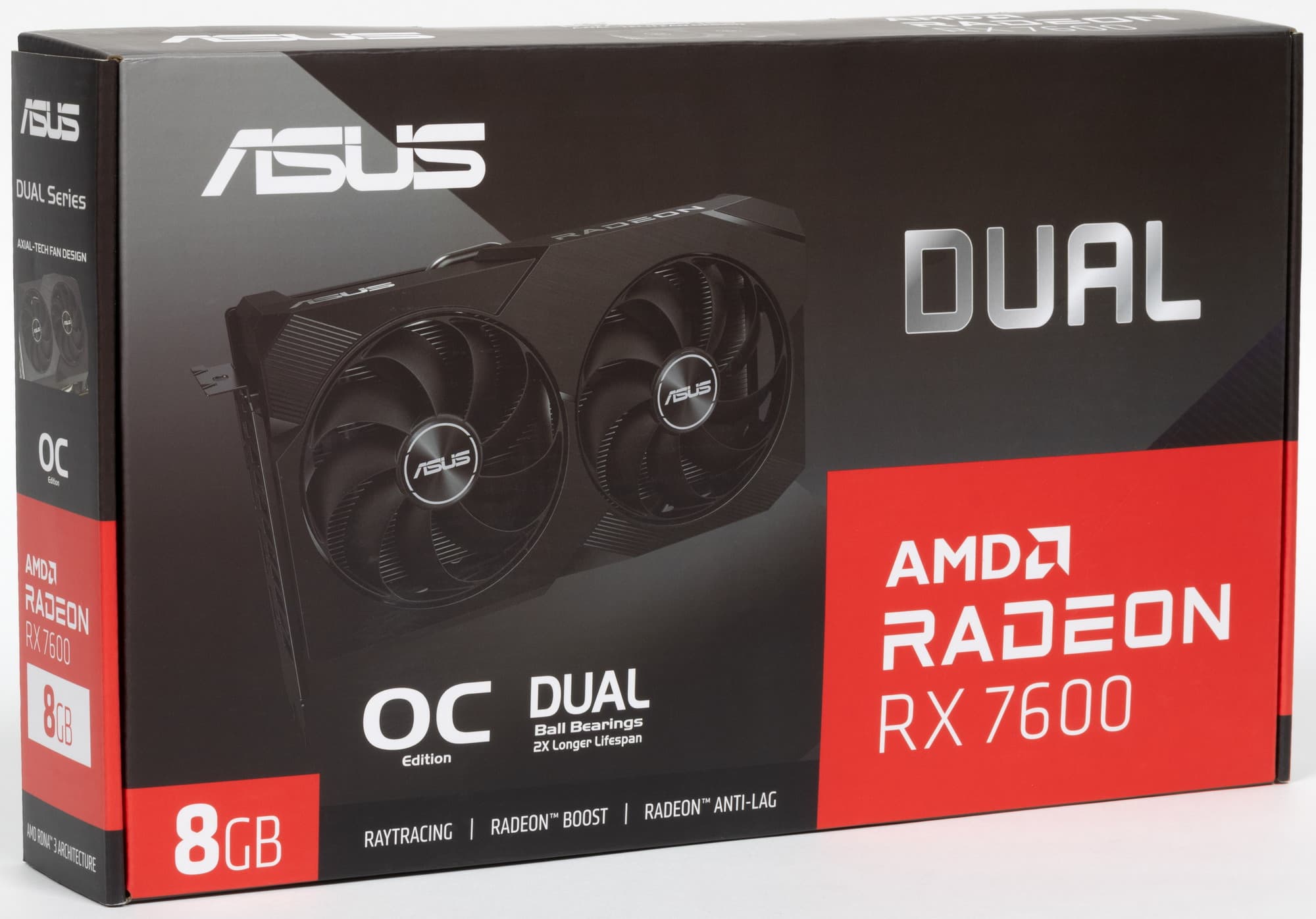| Asus Dual Radeon RX 7600 OC 8 ГБ 128-битной GDDR6X | ||