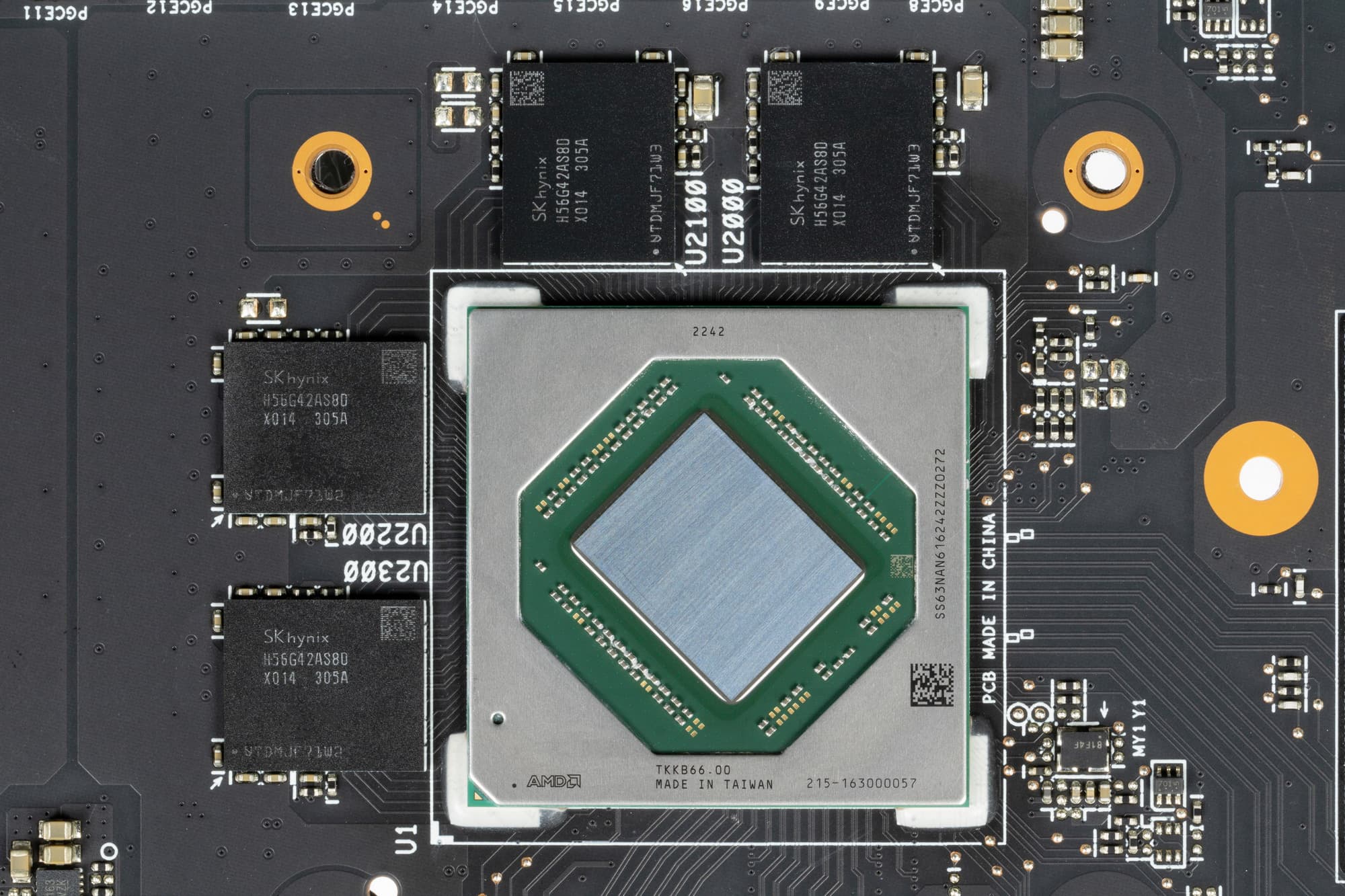 Также отметим, что все семейство Radeon RX 7000 имеет разъемы DisplayPort 2.1 UHBR13.5, что является преимуществом перед GeForce, которые ограничены возможностями DisplayPort 1.4a, и, в частности, позволяет вывести изображение в 4K при 240 Гц без потокового сжатия по одному кабелю. Аппаратные возможности по кодированию и декодированию видеоданных включают полную поддержку формата AV1.