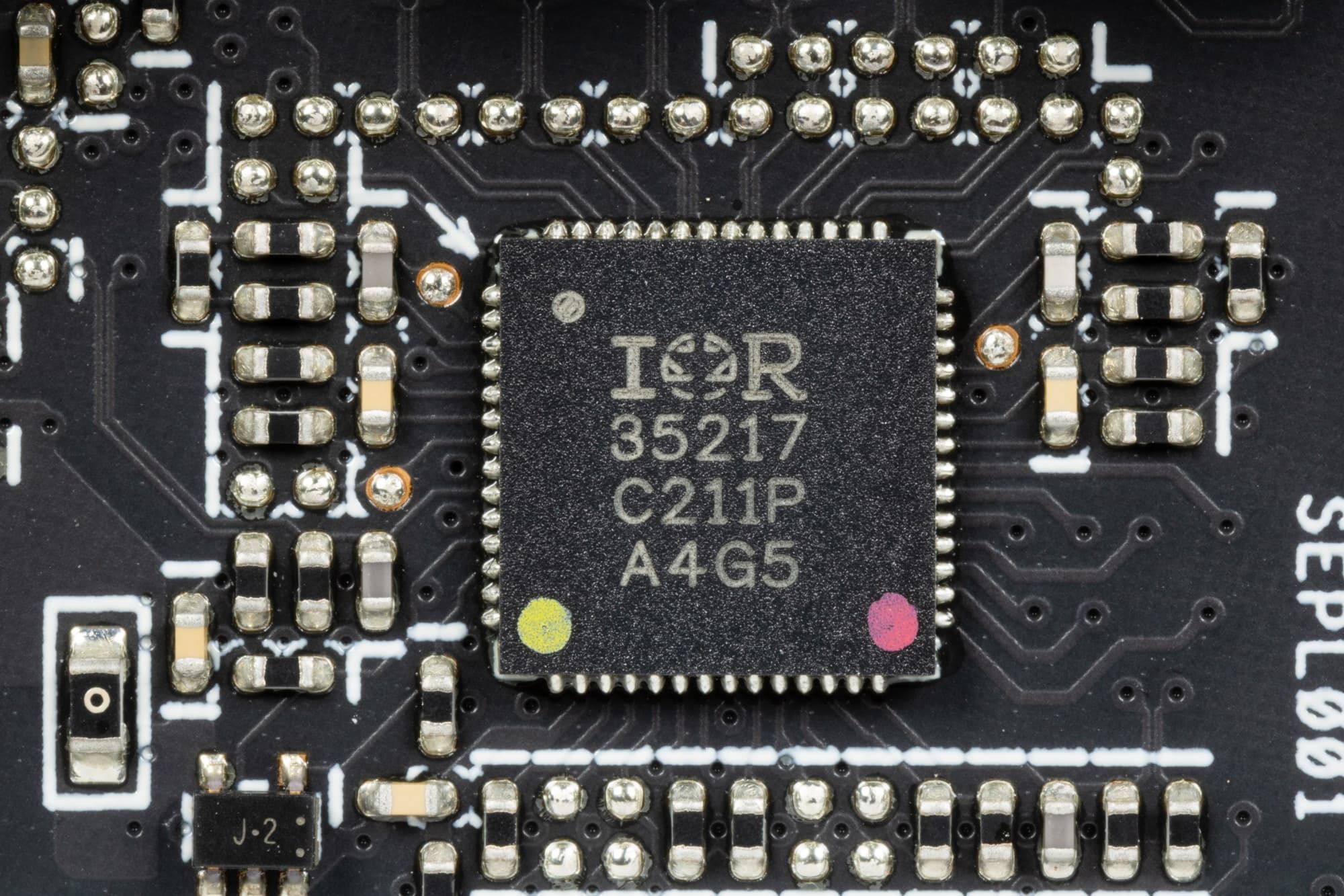 8 фазами питания ядра управляет ШИМ-контроллер IR35217 (Infineon). Он рассчитан максимум на 8 фаз.