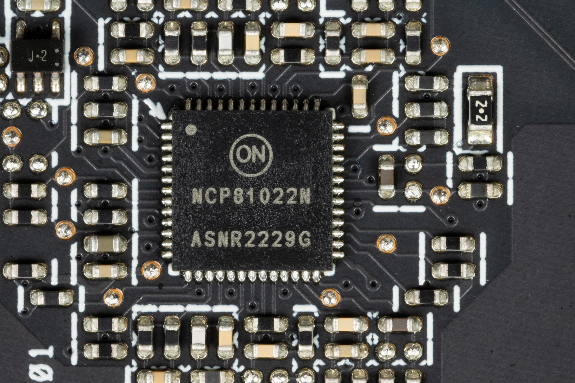 Питанием микросхем памяти управляет ШИМ-контроллер NCP81022 (On Semiconductor).