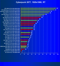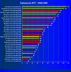 | 24 | RX 6650 XT 8 ГБ, 2410—2683/17500 | 213 | 747 | 35 000 |