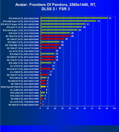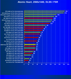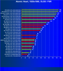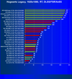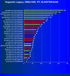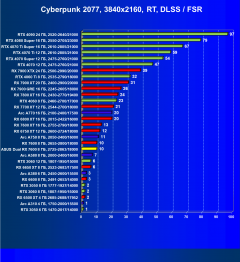 Результаты тестов со включенной аппаратной трассировкой лучей и/или DLSS/FSR/XeSS в разрешениях 1920×1080, 2560×1440 и 3840×2160