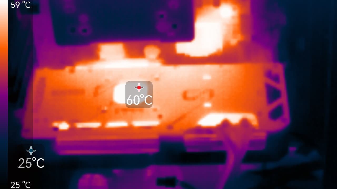 Максимальный нагрев наблюдался в центральной части PCB и у разъема PCIe.