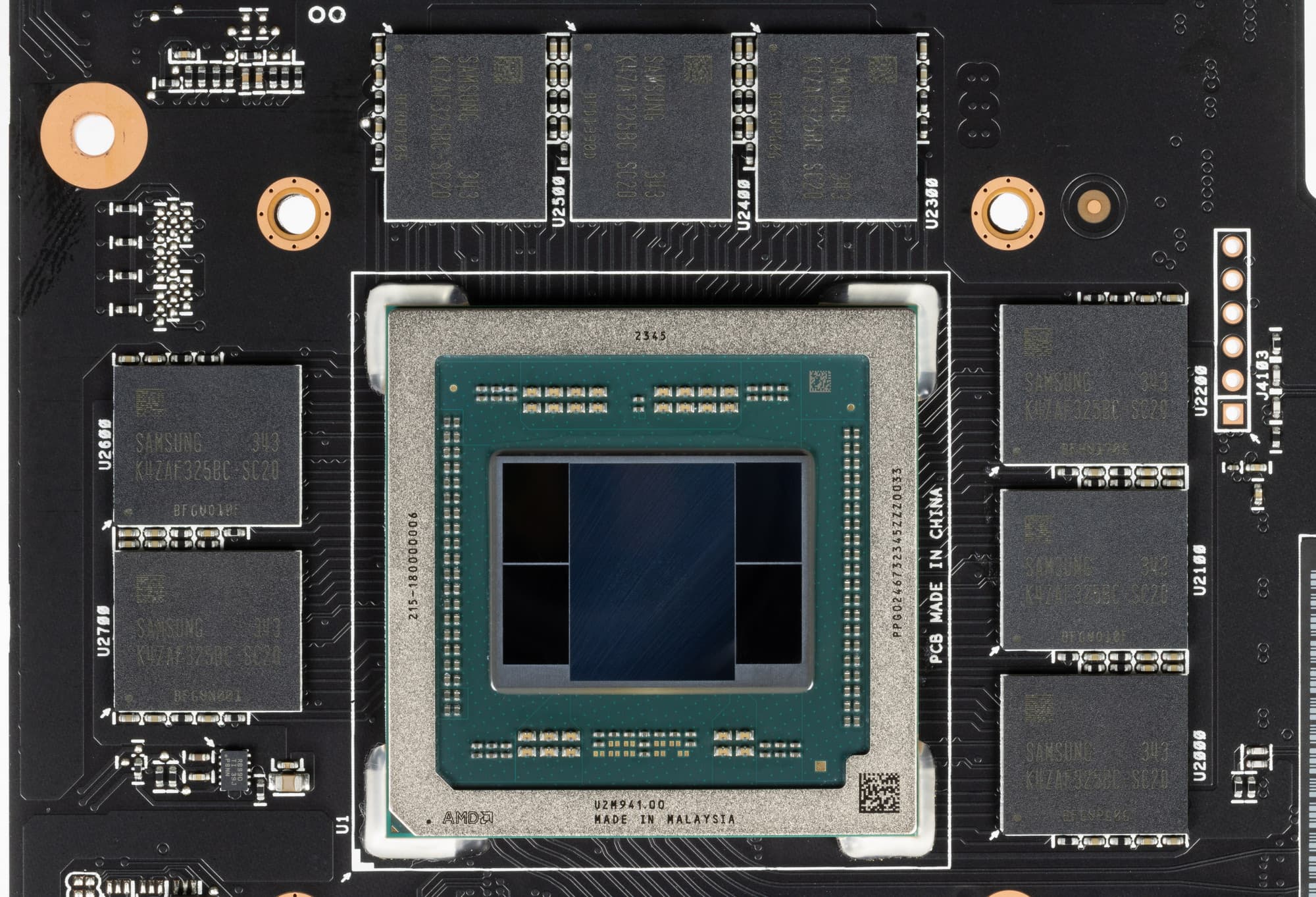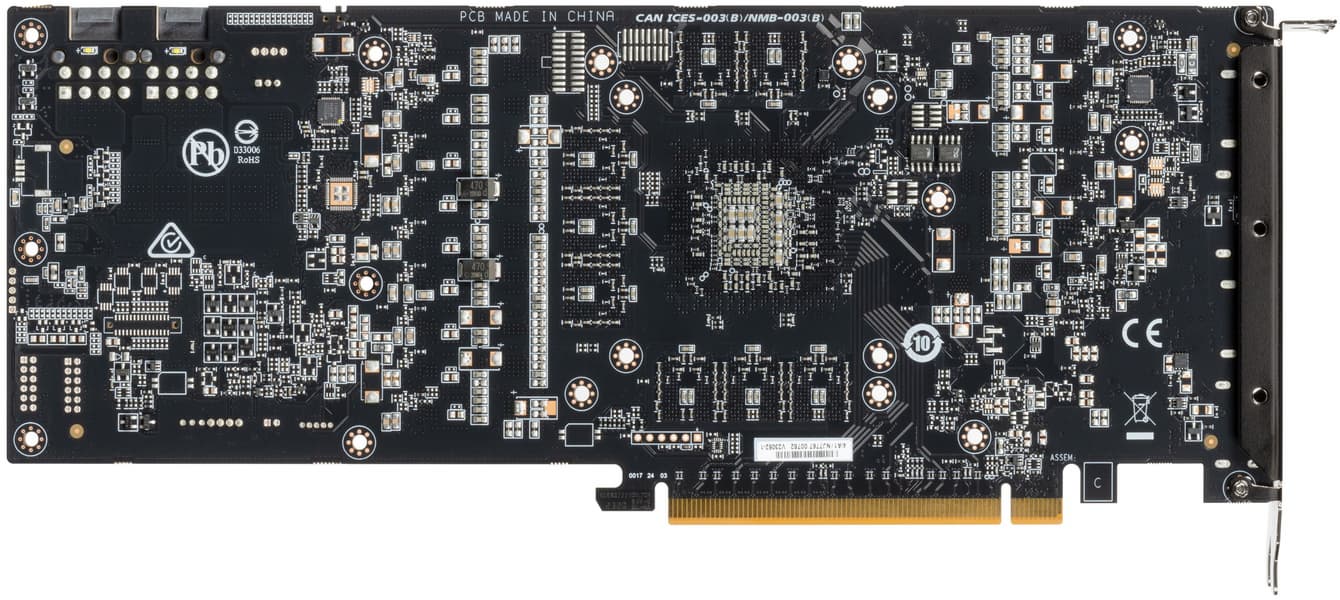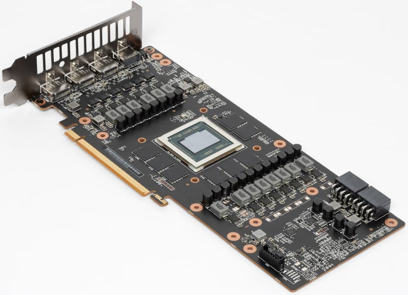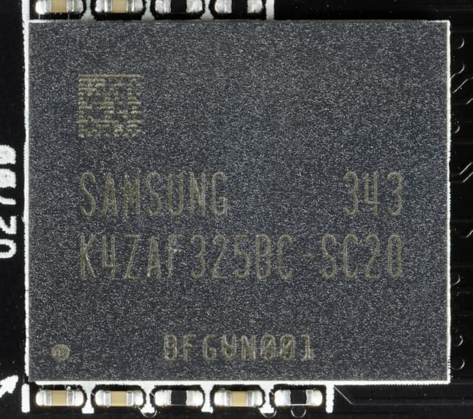 Карта имеет 16 ГБ памяти GDDR6 SDRAM, размещенной в 8 микросхемах по 16 Гбит на лицевой стороне PCB. Микросхемы памяти Samsung (K4ZAF325BC-SC20) рассчитаны на номинальную частоту работы в 2500 (20000) МГц.