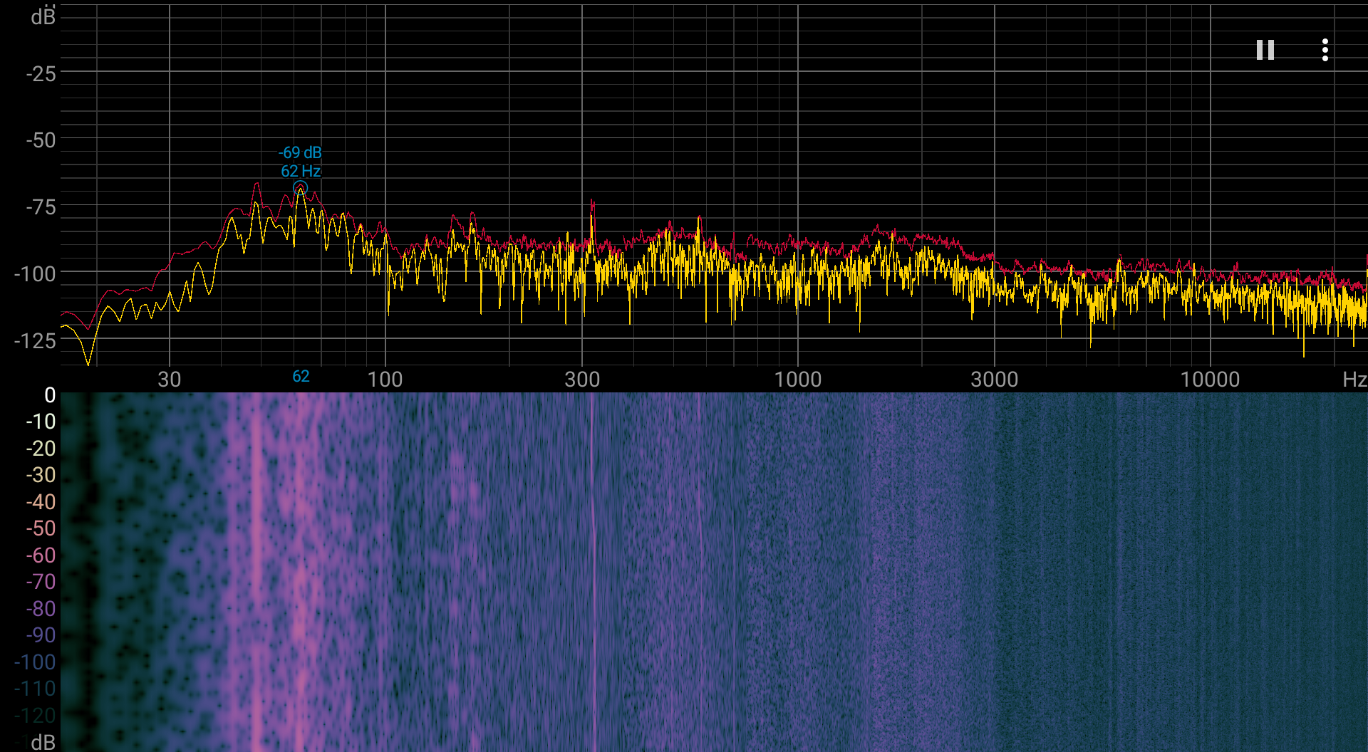 Спектрограмма шума достаточно ровная.