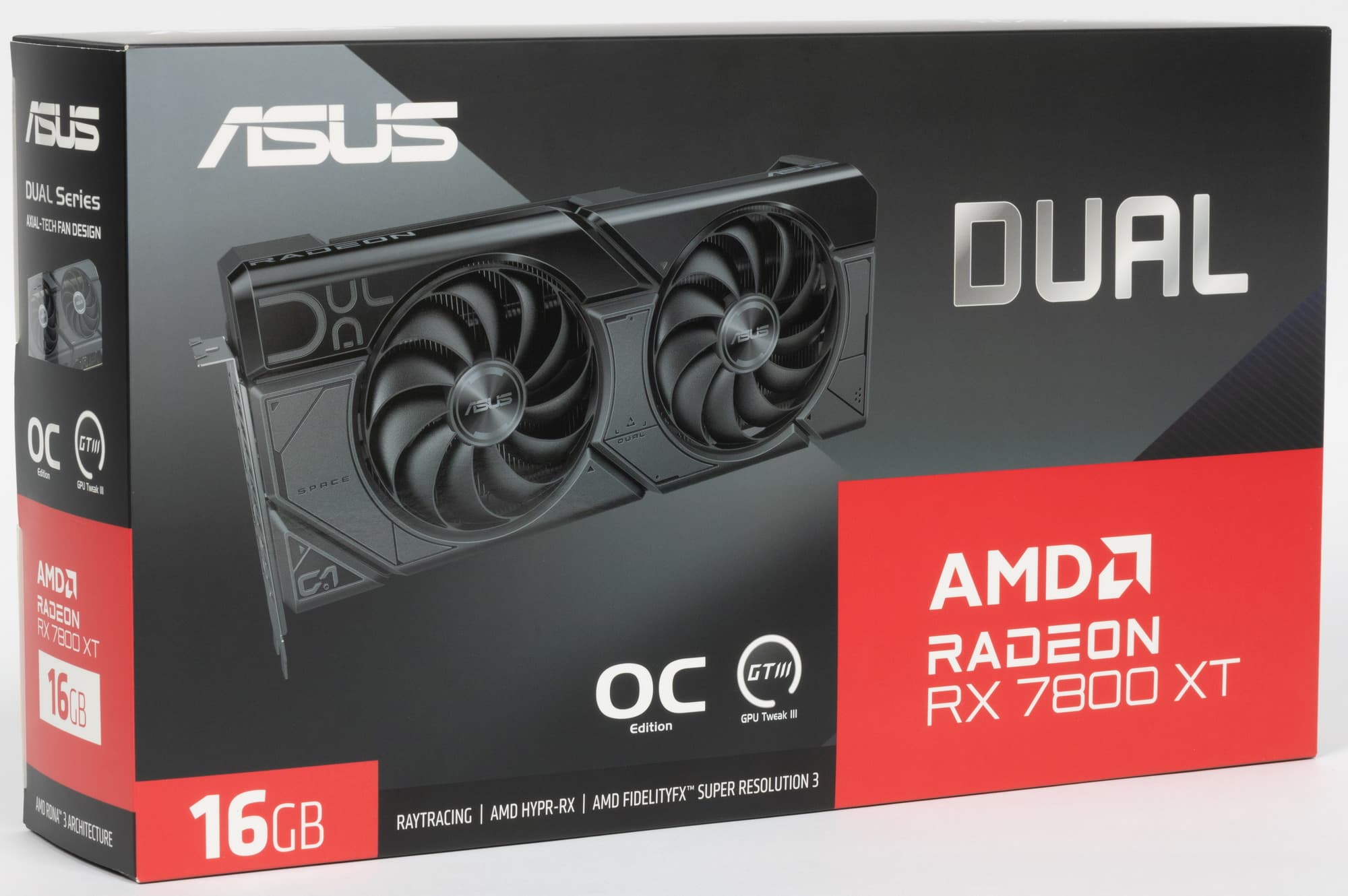 Итак, продолжаем изучать серийно выпускаемые карты на базе GPU AMD последнего поколения. И снова у нас на рассмотрении четвертый по уровню производительности ускоритель 3D-игр из этого семейства — Radeon RX 7800 XT производства Asus. При этом мы рассматриваем карту из наиболее дешевой серии Dual, которая отличается минималистичным дизайном и отсутствием подсветки и прочих излишеств.