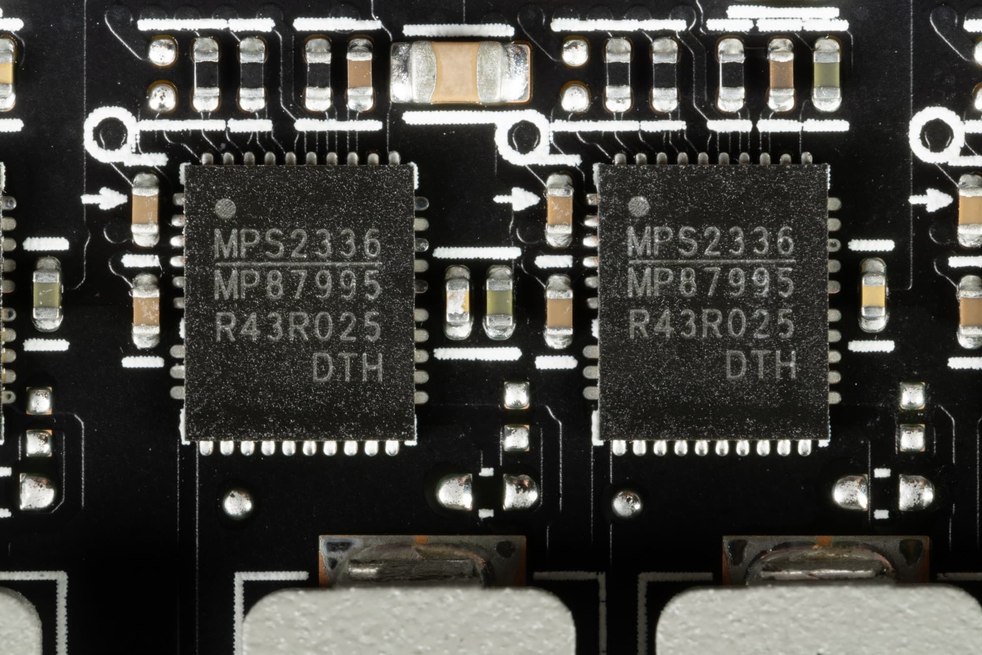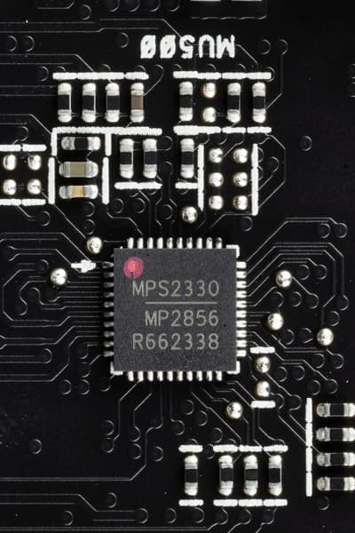 В преобразователе питания ядра используются транзисторные сборки DrMOS — в данном случае MP87995 (Monolith Power Systems), рассчитанные максимум на 50 А.