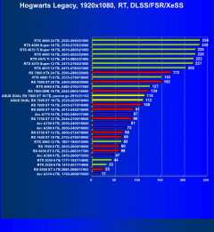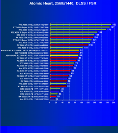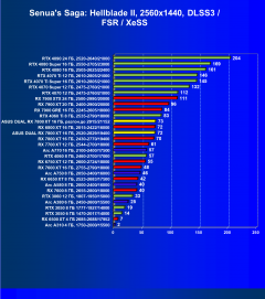 Результаты тестов со включенной аппаратной трассировкой лучей и/или DLSS/FSR/XeSS в разрешениях 1920×1080, 2560×1440 и 3840×2160