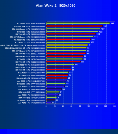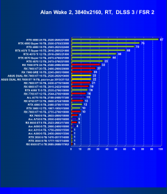 Технология AMD FSR не может столь же эффективно компенсировать падение производительности от включения RT, как это делает DLSS в случае видеокарт Nvidia, да и без технологий динамического масштабирования карты Nvidia в таких играх быстрее. Видеоускорители получают существенный дополнительный выигрыш за счет поддержки DLSS 3 и FSR 3 (с генерацией кадров) в ряде современных игр, однако технология DLSS 3 уже внедрена гораздо шире, чем FSR 3, да и эффективность у нее выше. Поэтому здесь Radeon RX 7800 XT уступает своему конкуренту GeForce RTX 4070 до 25% и может сравниться только с GeForce RTX 4060 Ti. Даже повышенные частоты и ручной разгон карты Asus не вывели ее на уровень GeForce RTX 4070.