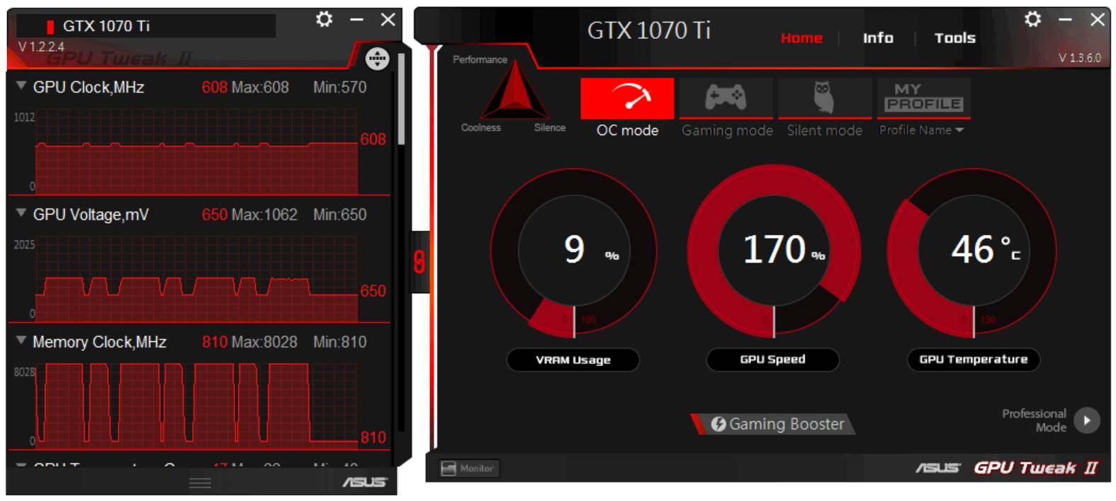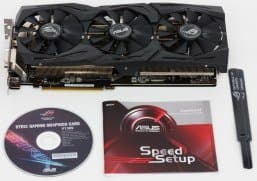 При этом обеспечивается очень гибкое регулирование напряжений на ядре с ювелирной точностью с помощью фирменной утилиты Asus GPU Tweak II, которая поставляется с картой на диске, а также ее можно скачать с сайта производителя. Программа позволяет автоматически настроить работу ускорителя на максимально возможные частоты (если владелец не желает самостоятельно искать достижимый максимум). Эта же утилита управляет подсветкой системы охлаждения, и можно настроить как цветовую гамму, так и реакцию подсветки на события (нагрев карты, воспроизведение музыки и т. д.).