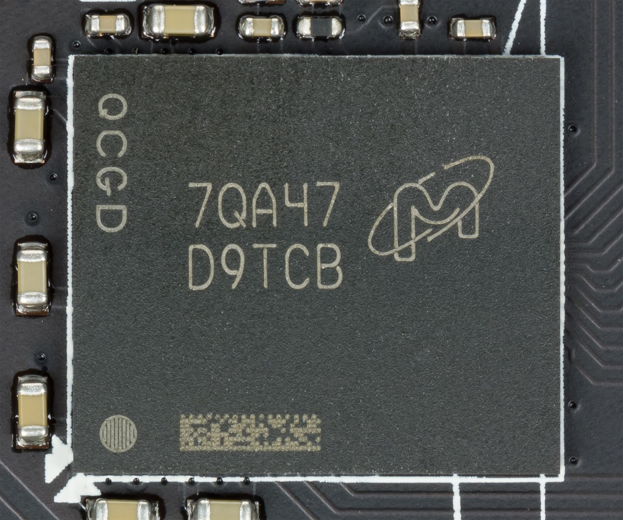 Карта имеет 8 ГБ памяти GDDR5 SDRAM, размещенной в 8 микросхемах по 8 Гбит на лицевой стороне PCB. Микросхемы памяти Micron (GDDR5) рассчитаны на номинальную частоту работы в 2000 (8000) МГц.