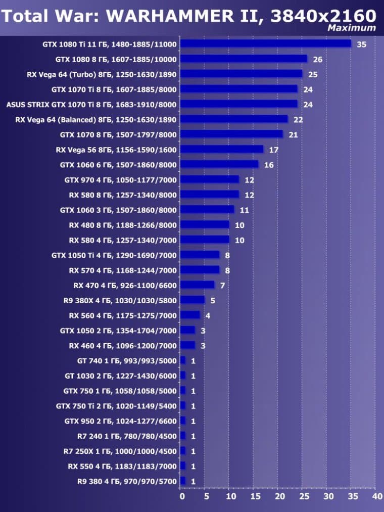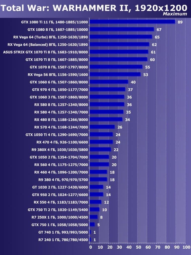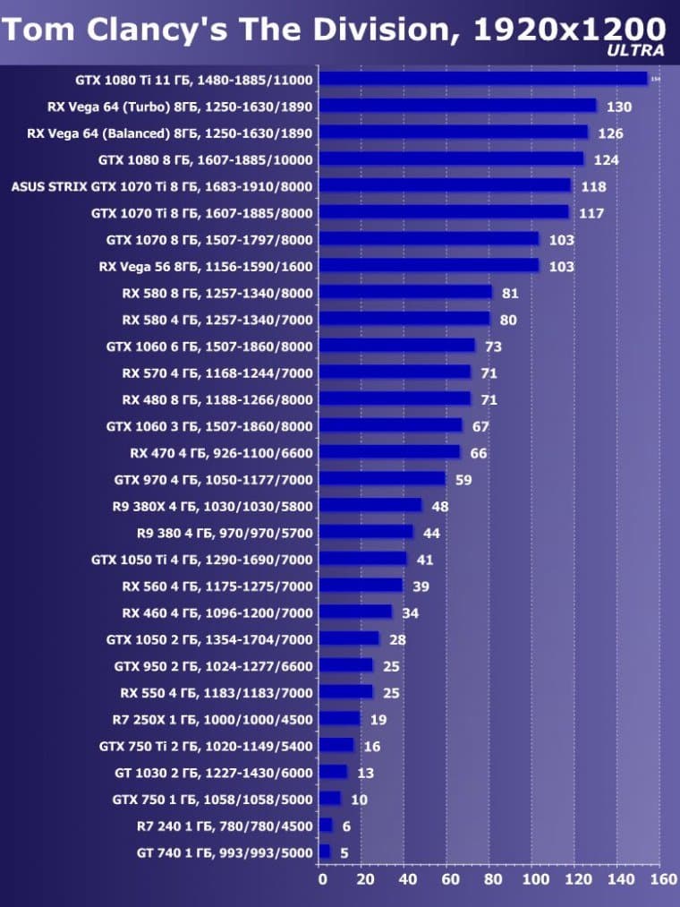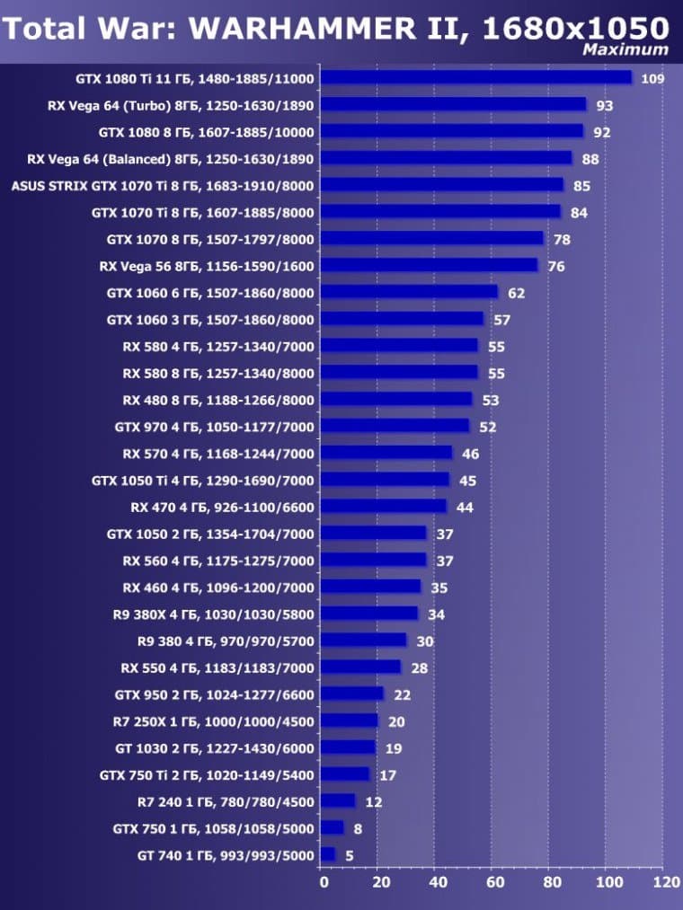 | 15 | GTX 1070 Ti 8 ГБ, 1607—1885/8000 | 595 | 2260 | 38 000 |