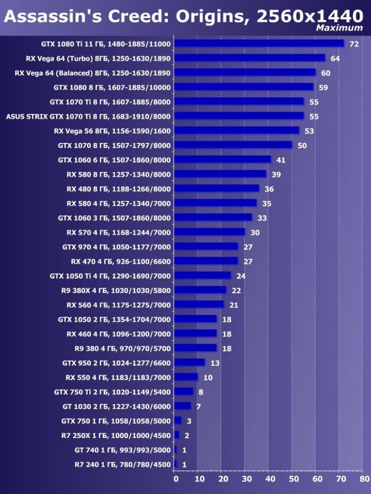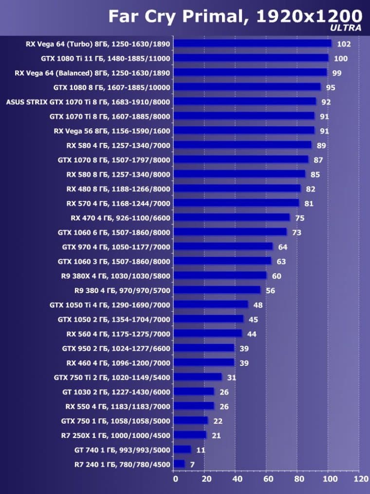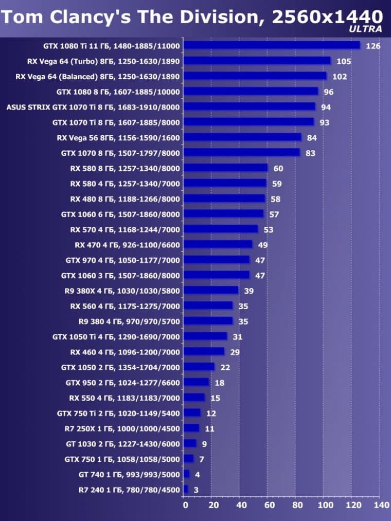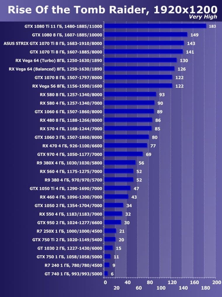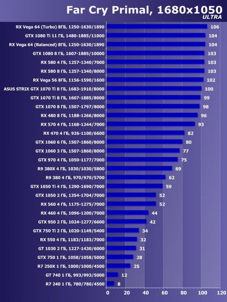 | 15 | GTX 1070 Ti 8 ГБ, 1607—1885/8000 | 595 | 2260 | 38 000 |