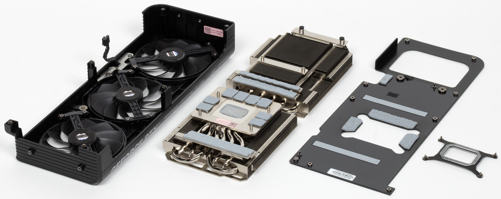 Несколько трубок припаяны к большой пластине, которая охлаждает как ядро, так и микросхемы памяти (через термопрокладки). В качестве термоинтерфейса для охлаждения ядра используется термопаста.