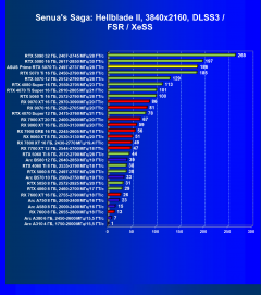 Результаты тестов со включенной аппаратной трассировкой лучей и/или DLSS/FSR/XeSS в разрешениях 1920×1080, 2560×1440 и 3840×2160
