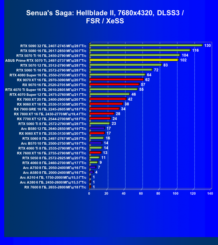 | 09 | RTX 5070 Ti 16 ГБ, 2450—2790 МГц/28 ГТ/с | 598 | 5085 | 85 000 |