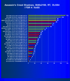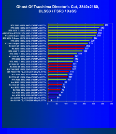 Рейтинг составлен по 10 тестам, в которых используется технология трассировки лучей и одновременно технология Nvidia DLSS, AMD FSR или Intel XeSS. Этот рейтинг нормирован по самому слабому ускорителю в данной группе — Arc A310 (то есть сочетание скорости и функций Arc A310 приняты за 100%).